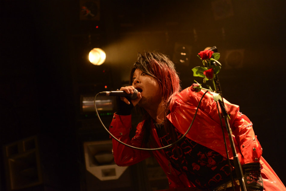 ひと言に踊らせると言ってもいろいろあって、それこそJin-Machineのように楽しく振り付けることもひとつだ。Jin-Machineをヴィジュアル業界の先輩として「Jin-Machine兄さん」と呼ぶFly or Dieも、「矛と盾」に振り付けを設けたり「Fly or Die!」という決めポーズをさせたりすることで、観客の体をいかに動かすかという点を工夫している。「あいしてみやがれ」直前のMCでは、「愛させてください」という言葉とともに観客を拝ませることで謎の疑似宗教空間が出現しており、これは笑った。ダー様(Dar'k~ness(Vo.))は「この不思議な光景を外国人に見せたい」みたいなことを言っていたが、これもマキタスポーツ一流の批評精神の表れだ。つまり、「(お)約束」を徹底させることでガラパゴスな価値体系を生み出すのがヴィジュアル業界のビジネスモデルだ、ということである。この疑似宗教に乗ることができれば、そりゃ物販も喜んで買うさ(うん、僕も買ったよ、CDと生写真)。さらに面白いのは、ライブ中にも説明されていたように、Fly or Dieのファンシステムがポイント会員のような制度になっていることだ。Fly or Dieに忠誠を誓うファンは、「野良ローズ」から始まって「ロイヤル・ローズ」を目指すべくライブに通い続けることになる。マックス・ヴェーバーも驚き(?)の宗教と資本主義の蜜月だが、ここで重要なことは、拝むことも物販を買うことも、踊ったり振り付けに合わせたりすることと同様、身体の動きだということである。さまざまな水準で、みんなの身体を動員することがライブ体験の本領なのかもしれない。