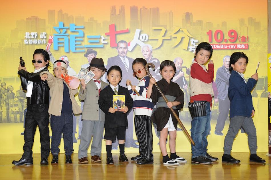 映画『龍三と七人の子分たち』のDVDとBlu-ray化を記念して、10月5日に行われたイベントに人気子役・寺田心ら8名が出席。本作で大暴れする元ヤクザに扮した“こども応援隊”の結成式が行われた。