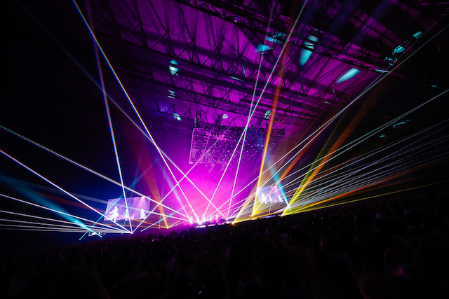 幕張メッセという大舞台、電気グルーヴ側の気合いも十分に感じられた。客席の中央にまで伸びた花道、そして照明やレーザー、VJも取り入れられており、その環境を最大限に活かしたステージングだった。電気グルーヴのVJを担当するDEVICEGIRLSは、かつてPerfumeのツアーのVJを手がけた経験もある映像制作ユニットだ。今回の電気グルーヴのVJのなかにも、Perfumeの過去作へのオマージュと見受けられるものが多数あった。