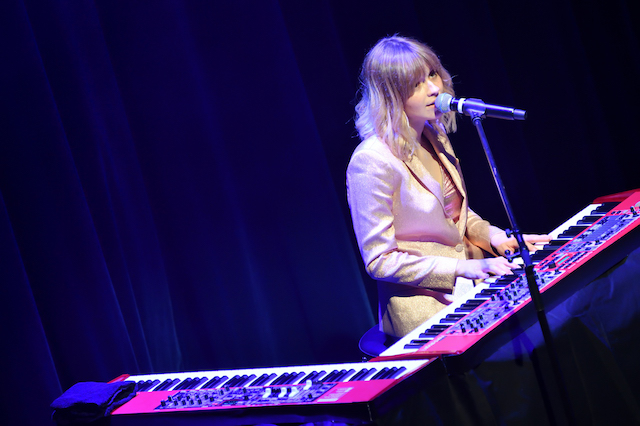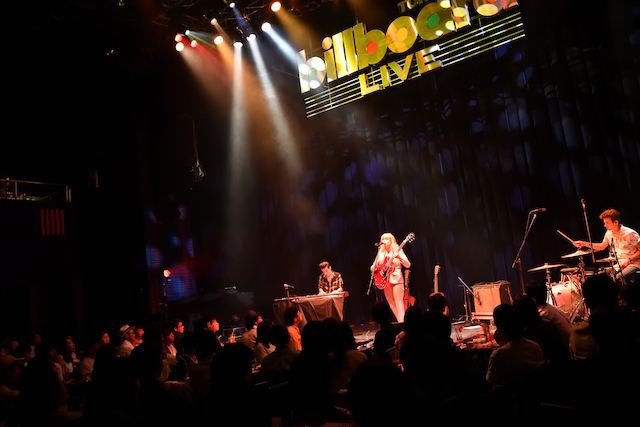 ライブは1曲目「Sweet Nothing」からスタートした。爽快感溢れる女性コーラスが流れるなか、ドラムとキーボードのサポートミュージシャンとともにピンク色のスーツで登場したガブリエル・アプリン。アコースティックサウンドと、彼女の凛とした歌声が響き渡り、観客もその音に身を委ねる。曲が終わると「こんにちはー」「ありがとうございます」と日本語で挨拶。会場であるビルボードならではの客席との近さ、親密さもあり、終始ファンとのコミュニケーションも交えながらライブは進んでいった。この来日のために勉強したのだろう覚えたての日本語で会話を試みようとする様子からは、24歳らしい等身大さと、彼女の愛らしい一面が伝わってきた。