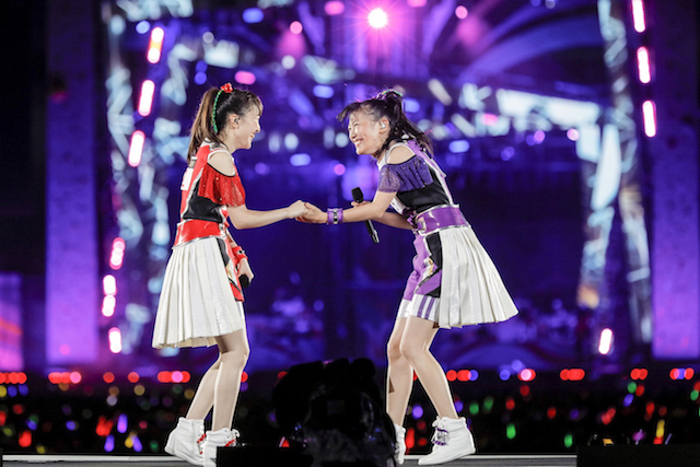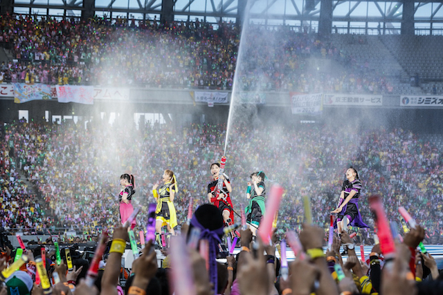 ファーストMCでは、高城が「緊張したー!」と「境界のペンデュラム」を振り返り、普段センターを務める百田に「(百田)夏菜子ちゃんってすごい!」とコメント。無邪気な姿を見せた後は、百田のラップから始まる最新シングル「BLAST!」でラップをクールにキメたももクロ。「ザ・ゴールデン・ヒストリー」ではメインステージを降り、観客を煽りながらアリーナ中央にあるセンターステージへ。センターステージで歌った「ココ☆ナツ」では、ココナツダンスを客席と一緒になって踊ったかと思えば、散水ホースを手に取り客席に水をまき始め、歌唱後には客席とメンバーがびしょ濡れになる一幕も。
