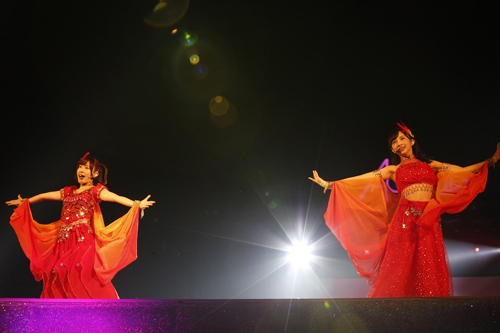 そこから、艶っぽいパフォーマンスも特徴的な、Aqours流フューチャーベース「少女以上の恋がしたい」を経て、この夏を盛り上げたシングル『ラブライブ!サンシャイン!! デュオトリオコレクションCD VOL.1 SUMMER VACATION』パートへ。スティールパンとサンバビートのトロピカルな響きが心地よい、梨子役の逢田、花丸役の高槻、鞠莉役の鈴木によるアッパーチューン「夏への扉 Never end ver.」、“黒澤姉妹”ことダイヤ役の小宮、ルビィ役の降幡は、フラメンコの要素も取り入れた振付も目立つラテン歌謡「真夏は誰のモノ?」で会場を盛り上げる。