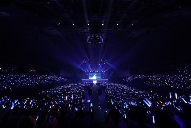 シンフォニックなロック曲の「EARNEST WISH」と「Frozen」でスタジアムスケールのライブに相応しい雰囲気を演出して始まった後半にも、早速ハイライトが訪れる。硬質なブレイクビーツと切ないメロディが特徴の「Blue Flower」を終え、客席がピンクに染まった「ピンク・マゼンダ」と“作曲・坂部剛ゾーン”が訪れたあと、最新アルバムのキラーチューンである、声優フューチャーベースの最高峰「Yellow Sweet」がついに披露された。その後も「with you」→「color station」→「Floating Heart」→「with you」と、「with you」で挟むメドレーへ。このパートはこれまで築き上げてきた『内田彩とクラブミュージック』を総括するような痛快さを感じさせるとともに、内田のディスコグラフィーにおけるhisakuni・坂部剛の存在感を改めて思い知らされることとなった。