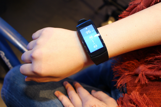 まずはB1階では時計型のフィットネスバンド・Galaxy Gear Fit2 Proを着用してサイクリングやボードを体験できるGalaxyフィットネスコーナーに足を向けた。日頃の運動不足を実感しつつ、息を切らしながらもどうにかクリア。ゲーム中も気にならないほどのGalaxy Gear Fit2 Proの軽さとフィット感に驚きつつ、360度撮影できるカメラ・Galaxy Gear 360の体験コーナーへ。花びらが舞う中を同カメラで写真と動画を撮影した。どの角度から撮影してもカメラ目線になるため、自撮りも手軽にでき、今後若者に浸透していきそうだ。