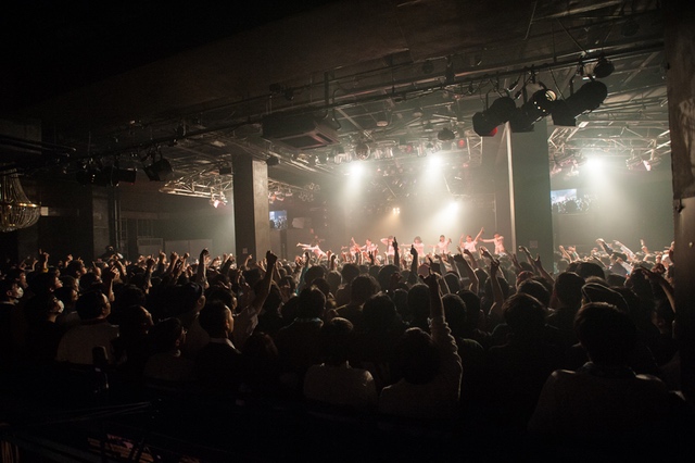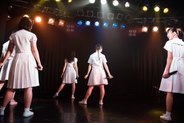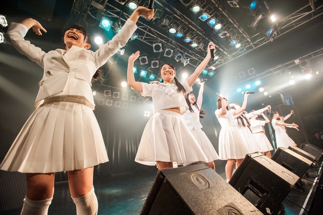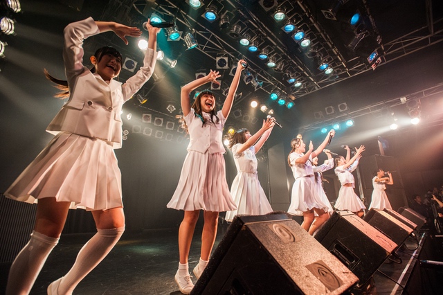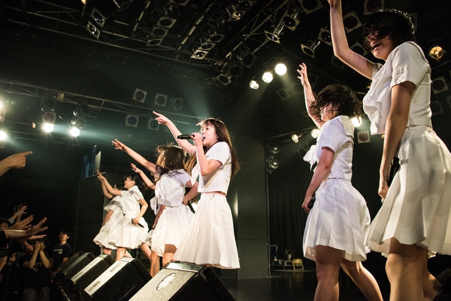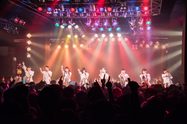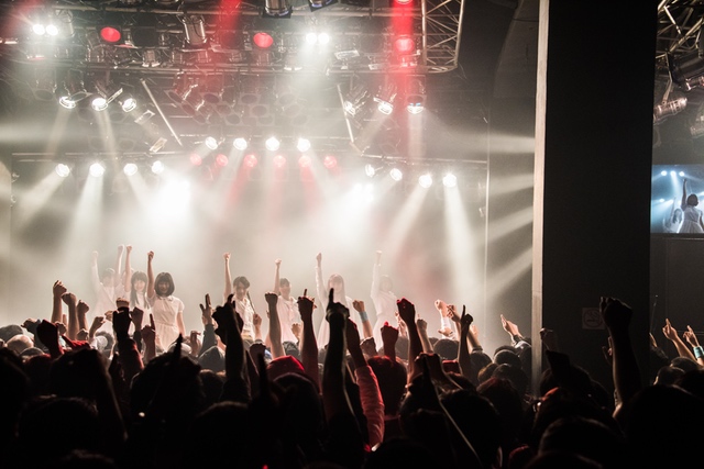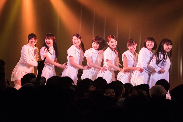 関係者エリアを含め、パンパンに敷き詰め状態になったフロア。スクリーンに円陣の様子が映り、メンバーがカメラに笑顔を振りまきながらステージへと向かっていく。ライブの幕を開けたのは、「ミラクルをキミとおこしたいんです」。2014年5月4日、AKIBAカルチャーズ劇場にてアイドルネッサンスが初めてファンのいるステージに立ち、歌い踊った始まりの曲だ。<始めるよ 準備はいいかい?/やらかすぜ そいつが可能性/悲しむより踊りまくって/奇跡の日々を始めようぜ>。笑顔と涙が入り混じった8人の表情は、その歌詞のメッセージを必死にこちらに伝えようとしているように見えた。
