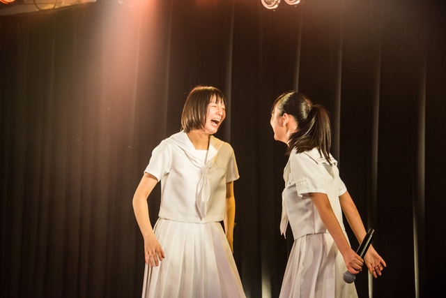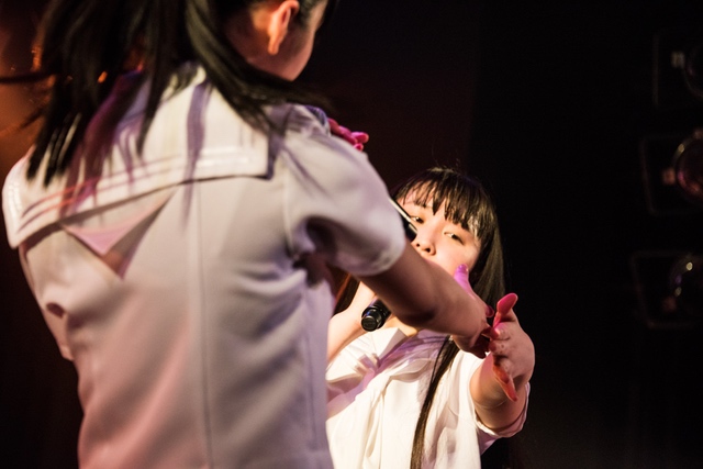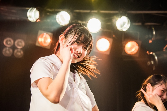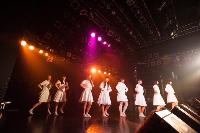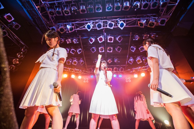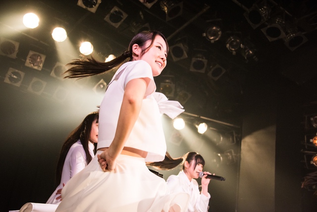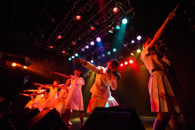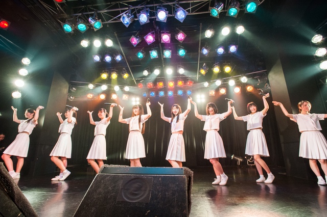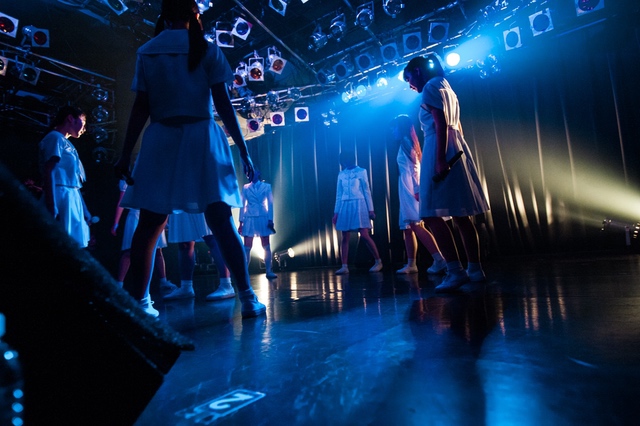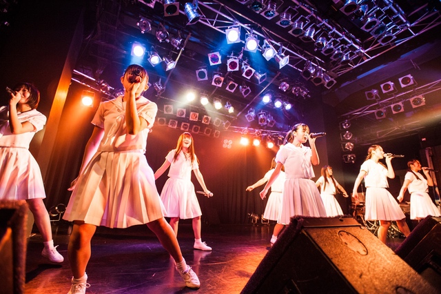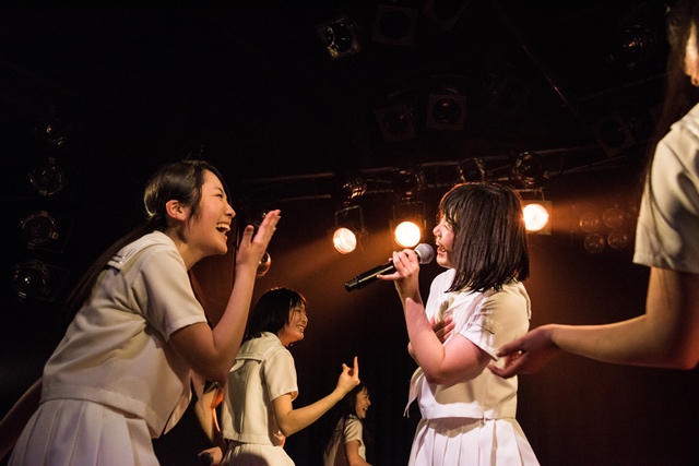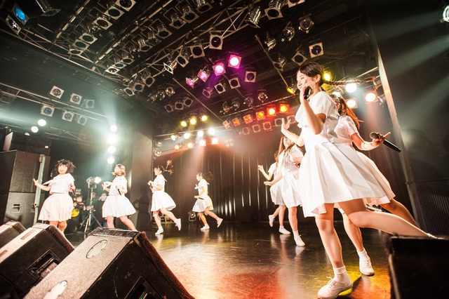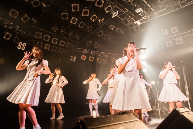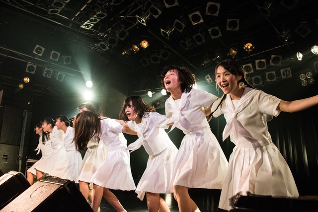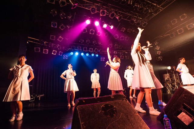 この日披露された25曲は、ファンのリクエスト投票結果を反映し、メンバーの感謝の気持ちとグループの集大成が詰まったセットリスト。熱気に満ちたフロアの盛り上がりとそれに溢れんばかりの気迫とパフォーマンスで応える8人。メンバー一人ひとりがそれぞれ身に纏った歴代の制服からの衣装チェンジを挟んだ9曲目までの中で、特筆すべきはBase Ball Bear feat.RHYMESTERの「The Cut」だろう。lyrical schoolとのコラボユニット・リリカルネッサンスとして、昨年1月に初披露され、CDとしても音源化されたこの楽曲。小出のボーカルパートをアイドルネッサンス、RHYMESTERのラップパートをlyrical schoolが担当していたが、lyrical schoolのメンバー変更により、昨年2月のリリースパーティー以降は披露されることはなかった。「The Cut」が再び息を吹き返したのは、今年1月にCLUB CITTA’にて開催された『年またぎ!名曲ルネッサンス全曲披露ライブ』でのこと。“全曲披露”と銘打たれていたこともあり、「The Cut」の披露は事前に予想されていたものであったが、蓋を開ければ全パートをアイドルネッサンス8人がマイクを繋いでいく、キレキレのパフォーマンスに進化を遂げていたのだ。CLUB CITTA’での公演が実質のところ、解散発表前の最後のライブであったため、アイドルネッサンスとしての「The Cut」は、計2回のみの披露となった。横一列に並んだメンバーが鋭い眼差しでフロアを指差すサビの振り、何よりも確実に上達していくマイクリレーは、素直に「続きが観たい」と思わせる未知の凄みを持ち合わせていた。