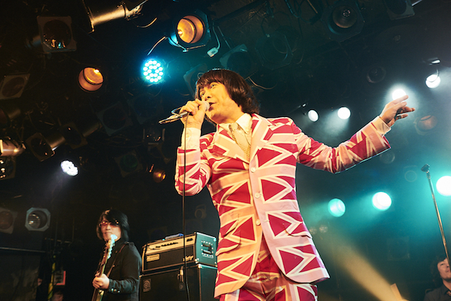 加藤ひさし(Vo)の佇まいも然りだ。もともと彼は天才的な音域と声量を誇るシンガー。歌だけでもショーは成立するだろうが、ただ立派なものに人は不思議とそそられないものだ。この日の彼は赤とピンクのユニオンジャック柄、本人いわく「宝石商みたいな(笑)」スーツである。1月~3月はダークカラーの装いが続いたそうで、「あれはカッコよすぎた」「いつもの加藤さんが戻ってきましたよ!」とMCで笑いを取っていく。まさにバランスの妙味。これが中毒性の高いエンターテインメントに結びついていくのだ。