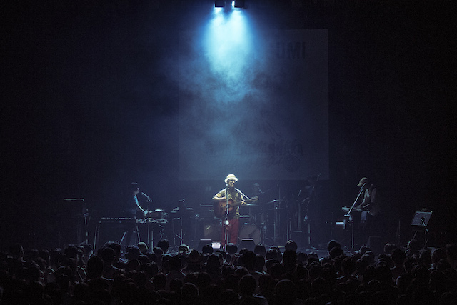 バンドのメンバーは、キーボードにYOSSY、ベースに伊賀航、ドラムに菅沼雄太、ギターに石井マサユキ。そしてハナレグミが登場すると、男性の声で「タカシー!」という声が飛んだ。ハナレグミとは永積 崇によるソロユニットである。