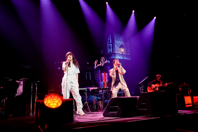 客席の照明が落とされ、「even if」のピアノインストが流れるなか、ピアノの鈴木大、アコースティックギターの石成正人がステージに登場。さらに平井堅が白いシャツ姿で登場すると、会場からは大きな歓声が巻き起こる。最初の楽曲は、「half of me」。2009年夏以来、このコンセプトライブでだけで披露されていたこのバラードは、『Ken’s Bar』を象徴する楽曲のひとつ。ピアノ1本のシンプルなアレンジで哀切な感情を美しく歌い上げ、オーディエンスを惹きつけていく。さらにアコギの演奏とともに「魔法って言っていいかな?」へ。表情豊かなボーカルによって、歌のなかでの情景が頭のなかで生々しく再現される。この没入感もまた、『Ken’s Bar』の魅力だ。