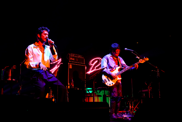 「とおりゃんせ」を歌いながら(めちゃくちゃ上手い)メインステージに戻り、ライブは後半へ。まずは「彼女の登場でJ-POP界は世界を変えたように活気づいたと思います」と紹介し、2人目のゲスト・あいみょんが登場。以前からラジオ番組などで、あいみょんに対するリスペクトを表明していた平井は、「こういうめんどくさいおじさんはいっぱいいると思うんだけど、(あいみょんは)俺が見つけた」「30分くらい褒めちぎってしまいそうだけど……応援しています」とコメント。「ありがとうございます」というあいみょんの照れた笑顔も印象的だった。2人で披露されたのは、あいみょんも大好きだという「鍵穴」、そして、彼女のオリジナル曲「愛を伝えたいだとか」。しなやかなグルーヴを放ちながら、平井、あいみょんの声が重なる瞬間はまちがいなく、この日のライブのハイライトだった。