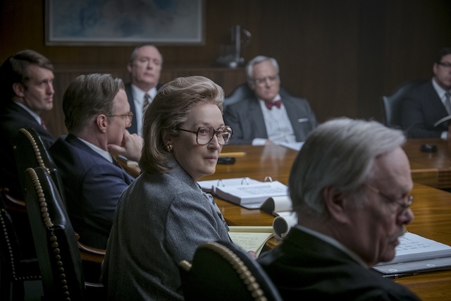 こう言ってしまっては身もふたもないが、映画としては大スクープをものしたタイムズを描いた方が面白くなったはずだ。ペンタゴン・ペーパーズの入手から検証、訴訟、そして1972年のピューリッツァー賞公益部門をこの記事によってタイムズが受賞するに至るまで劇的な要素が申し分なく揃っている。しかし、それではこれまで数多く作られたジャーナリストを主人公にした作品と代わり映えしない。言い換えれば、男社会の男たちの映画でしかない。