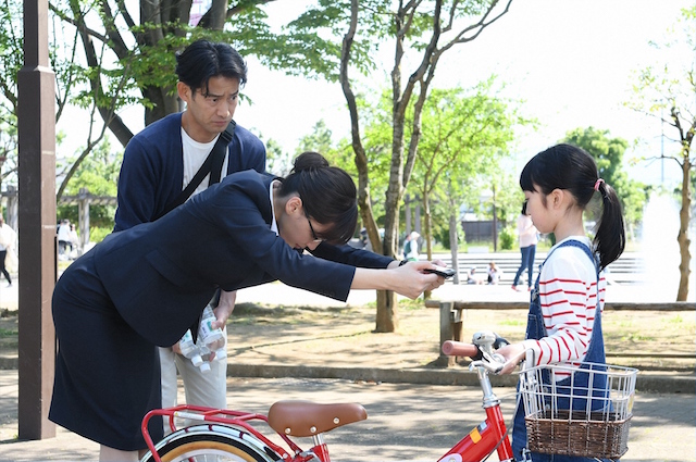 序盤で必要とされるのは、亜希子のロボットのような無機質さであり、本来の綾瀬の大きな魅力・ふんわりした笑顔を完全に封印。体温の感じられないカチカチの無表情で、少々滑稽に見える機械的な動きをし、小学生の義理の娘相手に体を直角に折り曲げて名刺を渡したり、“母親”として採用してもらうために履歴書を送ったりする。義理の娘が「変な人!」と怪訝そうな顔で拒否するのも、無理はない。
