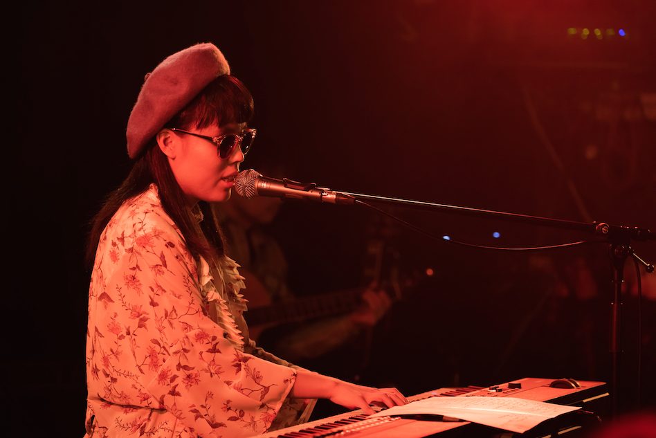 同公演のチケットはソールドアウト。ステージに登場したわたなべちひろは、パーカッション、ベース、ギター、ヴァイオリンを従え、オリジナル曲「Life Is Beautiful」からライブをスタートした。YAMAHA CP4 STAGEから奏でられるノリの良いポップな楽曲を力強く歌い上げ、早くも観客たちは彼女の世界に引き込まれる。