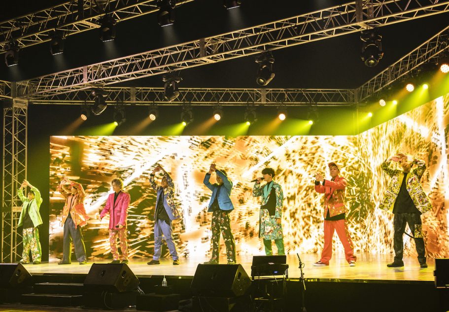 そしてボーカルの八木勇征&中島颯太のアカペラから、超アッパーな盛り上げ曲「Tumbling Dice」へ。赤く濡れたような照明の中、掛け声のテキストが画面に踊る。間奏部分でパフォーマーたちが繰り広げるスリリングなダンスなども含めて、中毒性の高さを見せつけた。