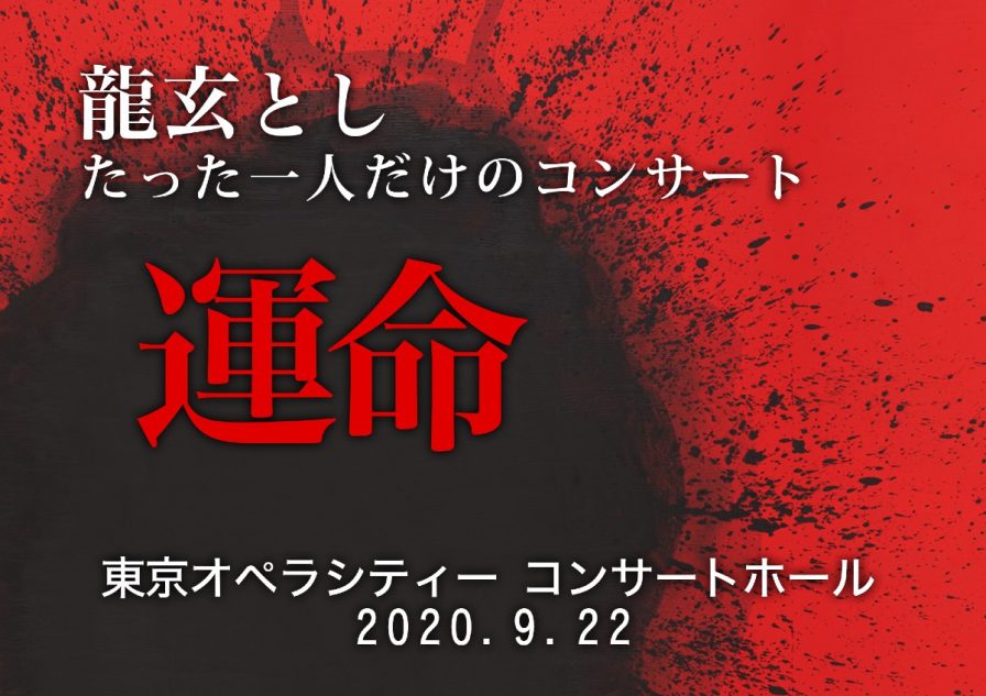 龍玄とし(Toshl)が、「プロジェクト運命」第2弾として、9月22日東京オペラシティー コンサートホール タケミツ メモリアルにて『たった一人だけのコンサート 運命』を開催する。