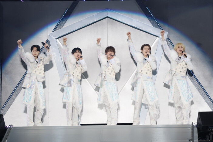 「みんなのスマイルが輝いている。世界中のどこの誰よりも」というコメントと共に聴かせた「Beautiful」では、天井から無数の電気スタンドの傘がぶら下がり、まるでベッドサイドで歌い聴かせるような演出がロマンチック。まったりとしたサウンドに乗せた〈キミはキミのままで〉という、優しくも温かいメッセージが胸の奥にまで響いた。
