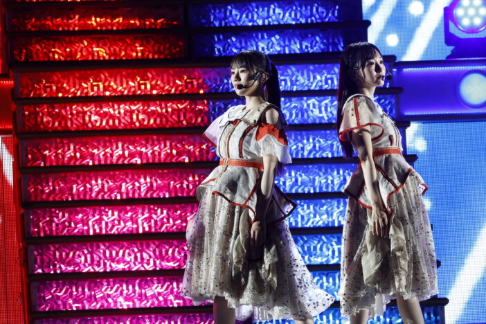 一方、Eveのステージもまた薔薇やハートがあしらわれたセットだが、ビビッドなピンクに統一され雰囲気がガラッと変わる。スタイリッシュなアレンジのダンスサウンドに、漣の伸びやかなボーカルと巴のラップやしなやかな声が加わることで、2人にしか成し得ない世界観を作り出している。高いキーの楽曲を難なく歌いこなす歌唱力はもちろんのこと、透明感あるボーカルに差し込まれる甘さを含んだ声色とブレスが、楽曲の持つセクシーさを色鮮やかに表現。ユニゾンで2人の声の相性の良さを見せつけるあたりも、Eveならではだ。