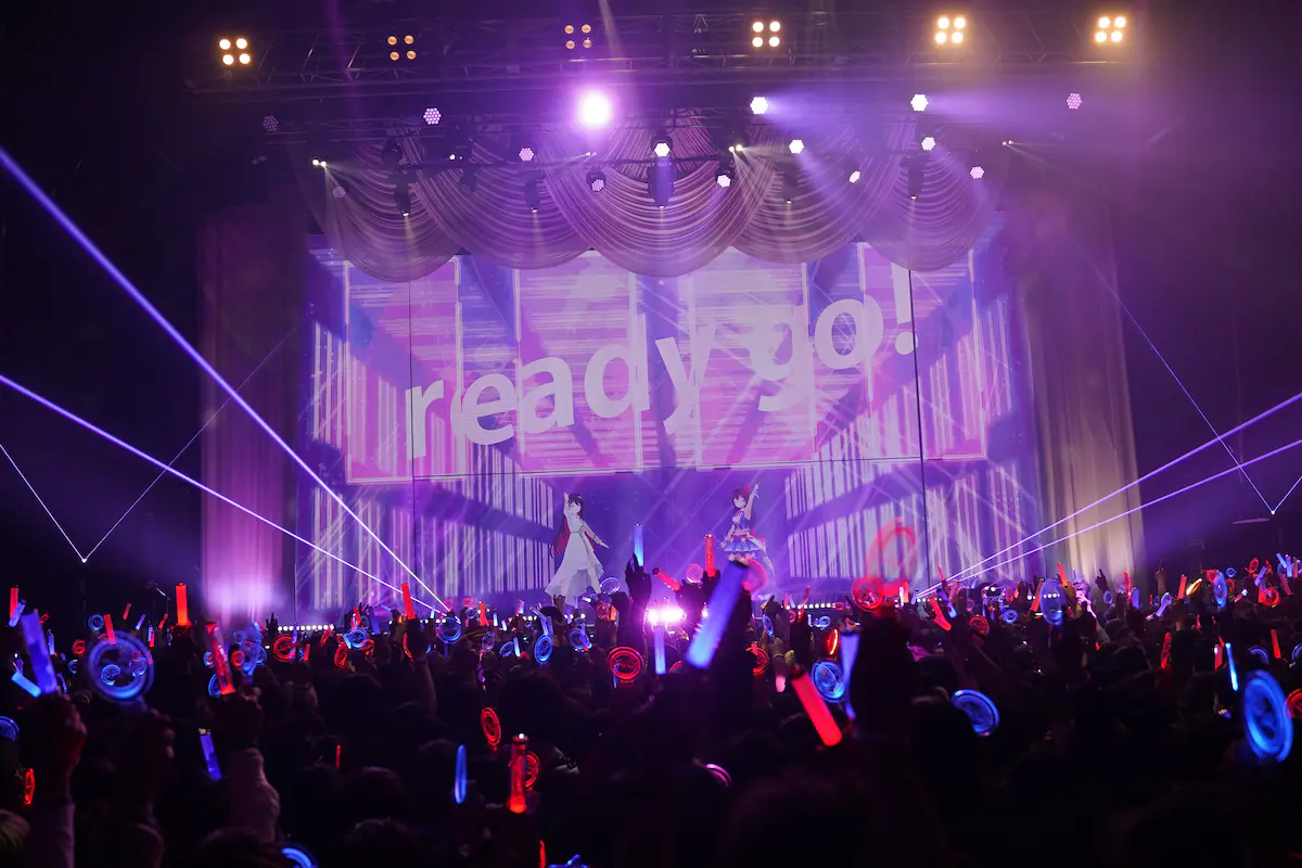 一旦ほのぼのとしたMCを挟むと、続く「MAG-NET」では2人ともドレスに衣装チェンジ。ここからは「この衣装に合う曲を」と選曲した楽曲が続く。バラード曲「惑わす星」ではそれぞれの歌声の魅力をじっくり聴かせると同時に、サビではお揃いのステップも披露。「君と僕はアルビレオ 惹かれ合う彗星テイル」では一度顔を見合わせた後パッと両サイドにそれぞれ視線を向け、終盤の熱唱でも観客を沸かせた。