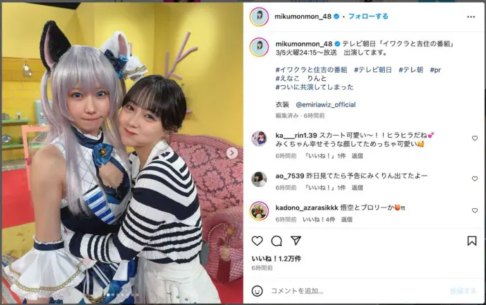 元HKT48の田中美久が3月17日、自身のInstagramを更新。カレンダーのオフショットを公開した。