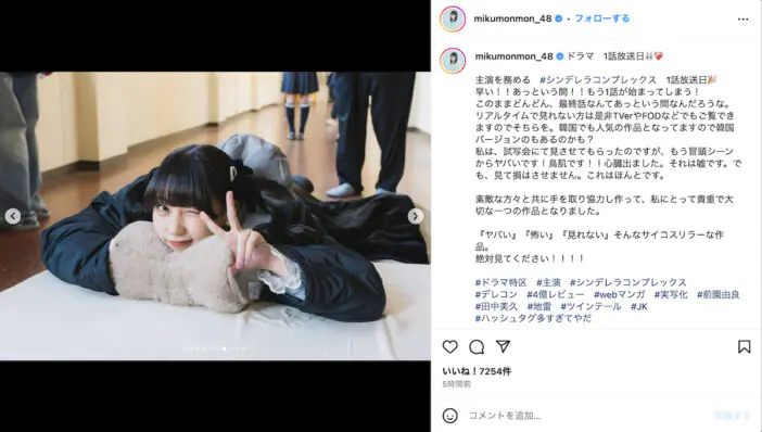 田中は「お気に入りのカット!!お酒!!卒業しないと撮れなかったカット!!!!」と紹介。最後に「オフショットカットはこれにて最後になります。#みくりんカレンダー が一年通して沢山の方に愛されますように。イベントもあるみたいなのでよろしくね」とメッセージを送った。