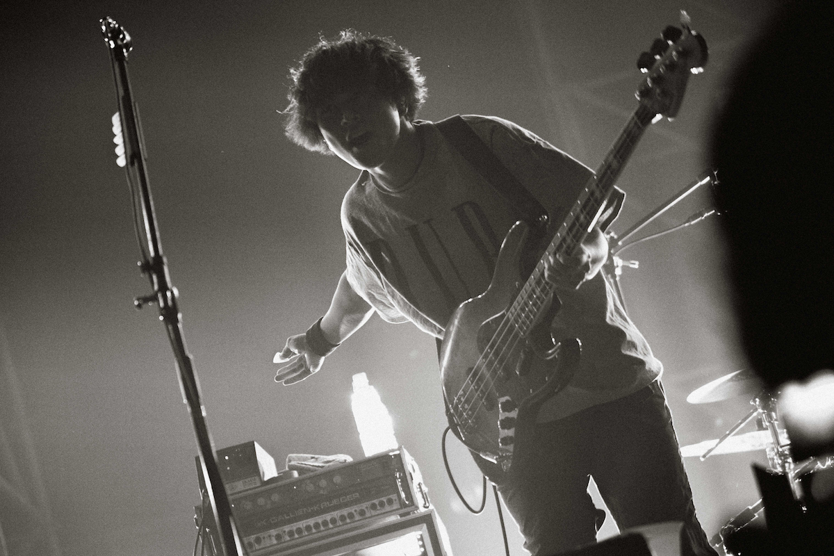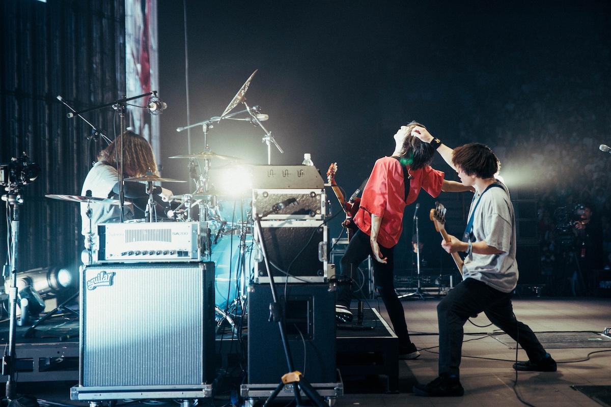 バンドの覚醒とともに、ライブの後半に差し掛かった。赤の背景が、大きく振りかぶって鳴らすメンバーのシルエットを浮き彫りにさせた「真赤」の鮮烈な光景。〈やるか やらないか〉の問いを自身に突きつける「告白」のサウンド。「ペガサス」では、観客のシンガロングと椎木のボーカルが掛け合いをするBメロが一つのハイライトに。ベースのフレーズをきっかけにぐんぐん突き進む「ぶっこむ.com」でも、バンドとオーディエンスの双方が本能を爆発させた。「フロムナウオン」では椎木が「いろいろなところが欠けている。情けない。恥ずかしい。でも俺は俺が好きだからな!」「悩みの一番の直し方は開き直ること。誰よりも近くにいる自分を抱きしめてあげること」と言葉を重ねていく。ギターを搔き鳴らしながらの「許してほしい。誰かに許してほしい。あんたのままでいいよって言われたい!」という叫びは、ベース&ドラムの翼を得て「大丈夫だから。今夜だけは許してやってよ」というリスナーへのメッセージに変わった。