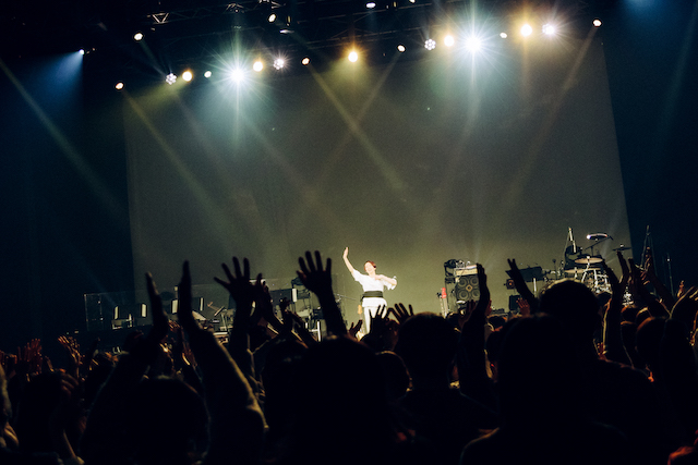 最後は日食CREWの4人に戻り「√-1」「0821_a」「ログマロープ」を演奏して終演。新曲の「0821_a」は早くもライブにおけるアンセムになっているような印象で、オーディエンスからコーラスが聴こえてきたのも感動的だった。星が瞬くような鍵盤のイントロからして魅惑的で、展開の多いこの曲は高いスキルを持ち合わせる日食CREWの持ち味を存分に楽しめる楽曲なのである。そして大団円の「ログマロープ」だ。会場中から響く〈鋼の心臓〉というフレーズが頼もしい。彼女の楽曲は無邪気に聴き手を応援するものではないが、こうやって心の深い場所を熱くしてきたからこそ、こうして多くのリスナーを惹きつけてきたのだろう。