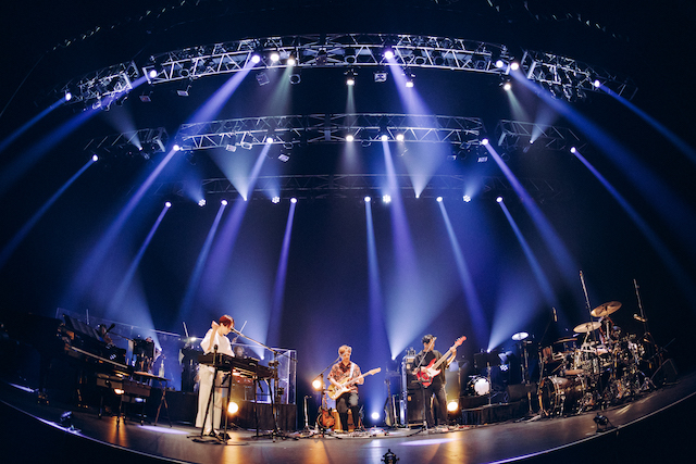 再び日食カルテットを交えて歌った「音楽のすゝめ」は、オーロラみたいに綺麗なストリングスに乗せて美しくも力強い歌を聴かせていく。奔放にうねりを上げるベースと洒脱なギターが絡み合う様も魅惑的で、これだけで満足だ......と思っていたら、次の「うつろぶね」でぶっ飛ばされた。ほとんどやり合うようなテンションのアンサンブルは壮観で、この日一番の見せ場だったのではないだろうか。