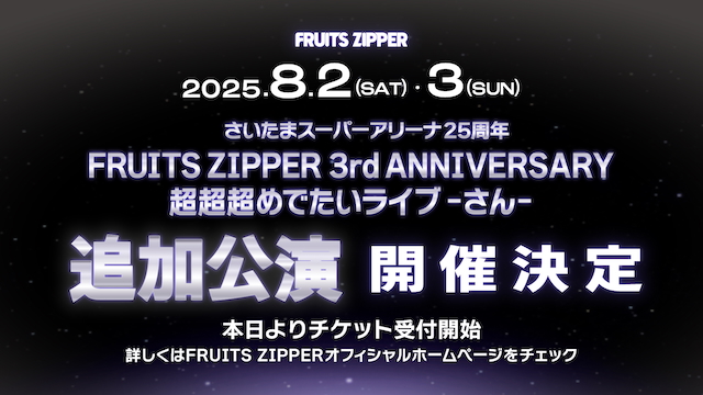 『さいたまスーパーアリーナ25周年 FRUITS ZIPPER 3rd ANNIVERSARY 超超超めでたいライブ -さん-】