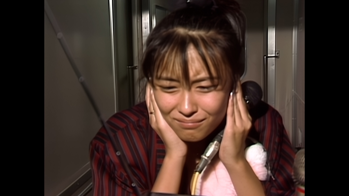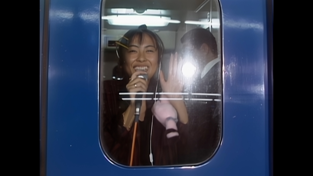 そして、本作を視聴していてあらためて驚いたことだが、中山はスタジオ歌唱と同じくらい中継での歌唱が多かった。思えば10代後半の中山はトップアイドルとして人気がうなぎ登りだったタイミングで、毎年数本の連続ドラマや主演映画に出演。さらに自身のコンサートツアーなどもあり、毎週木曜夜に都内にいるとは限らないわけだ。こうした中継にも興味深い場面が多々あり、ドラマや映画の収録現場では共演者のなかに若き日の名優たちの姿を見つけることもできる。また、ある時には新幹線移動で途中停車の駅ホームで歌唱したり、ある時にはしっかりと雪が積もった北海道の野外で歌ったりと、今ではちょっと考えられないようなシチュエーションも登場する。かと思えば、レコーディングスタジオからの中継で、中山がレコーディングブースのなかで歌う最中、ブースの外ではスタッフがそばを食べていたりタバコをふかしていたりというシュールな映像もあり、昭和という時代のおおらかさを感じずにはいられない。