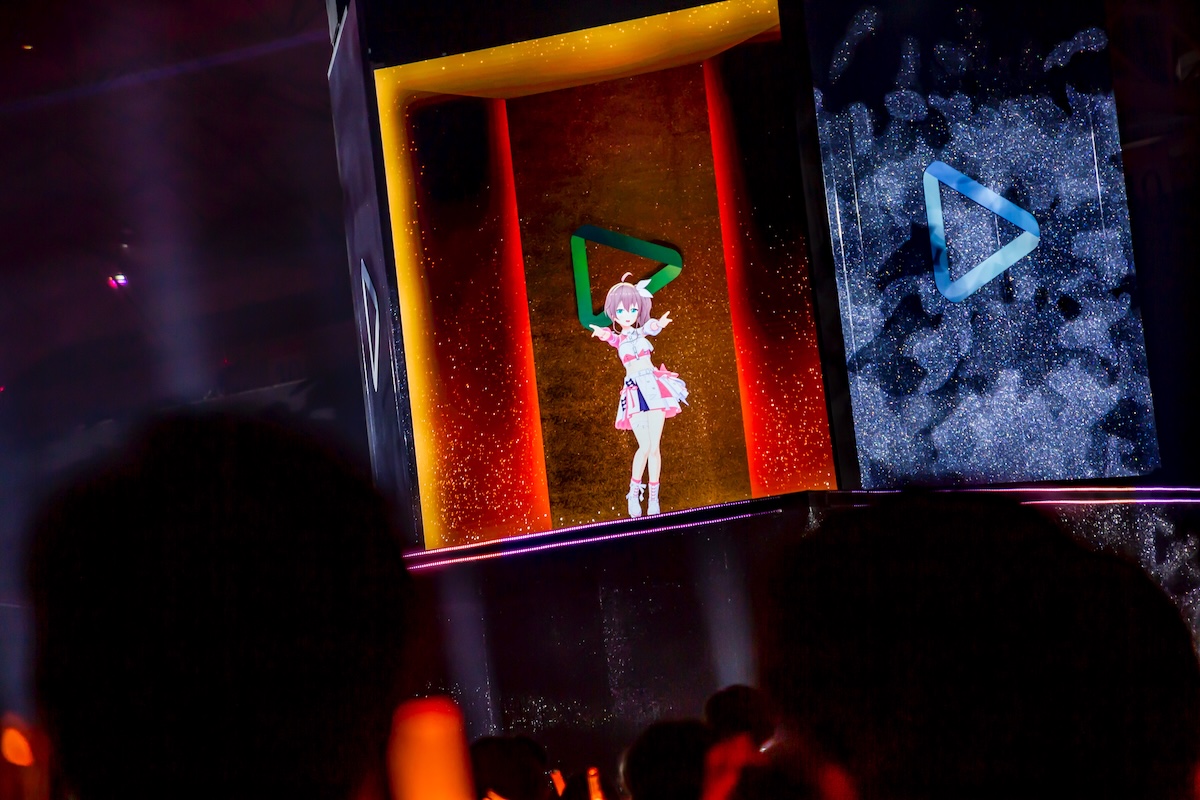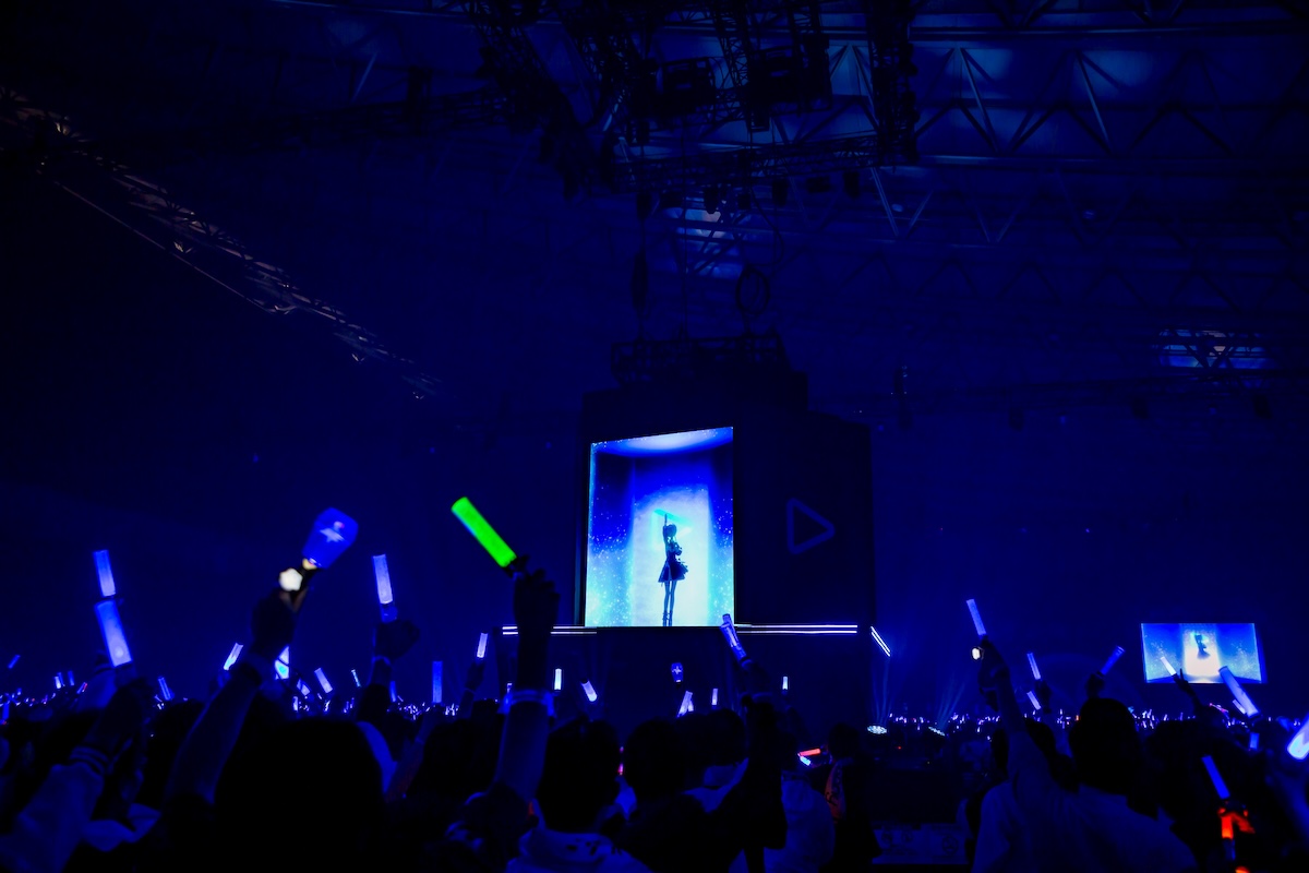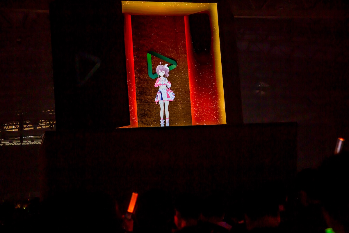 「幕張のみんなにお注射しちゃうぞ!」と、ハイテンションでステージを駆け回った博衣こより。IOSYSらしい電波ソング「シアワセ√コヨリニウム」で、会場は〈実験だ!実験!〉という大合唱。続くクレイジー・オリーは「かかってこいや!」と、巻き舌でヤンチャ全開。じんの「チルドレンレコード (Re:boot)」で熱いステージを繰り広げた。