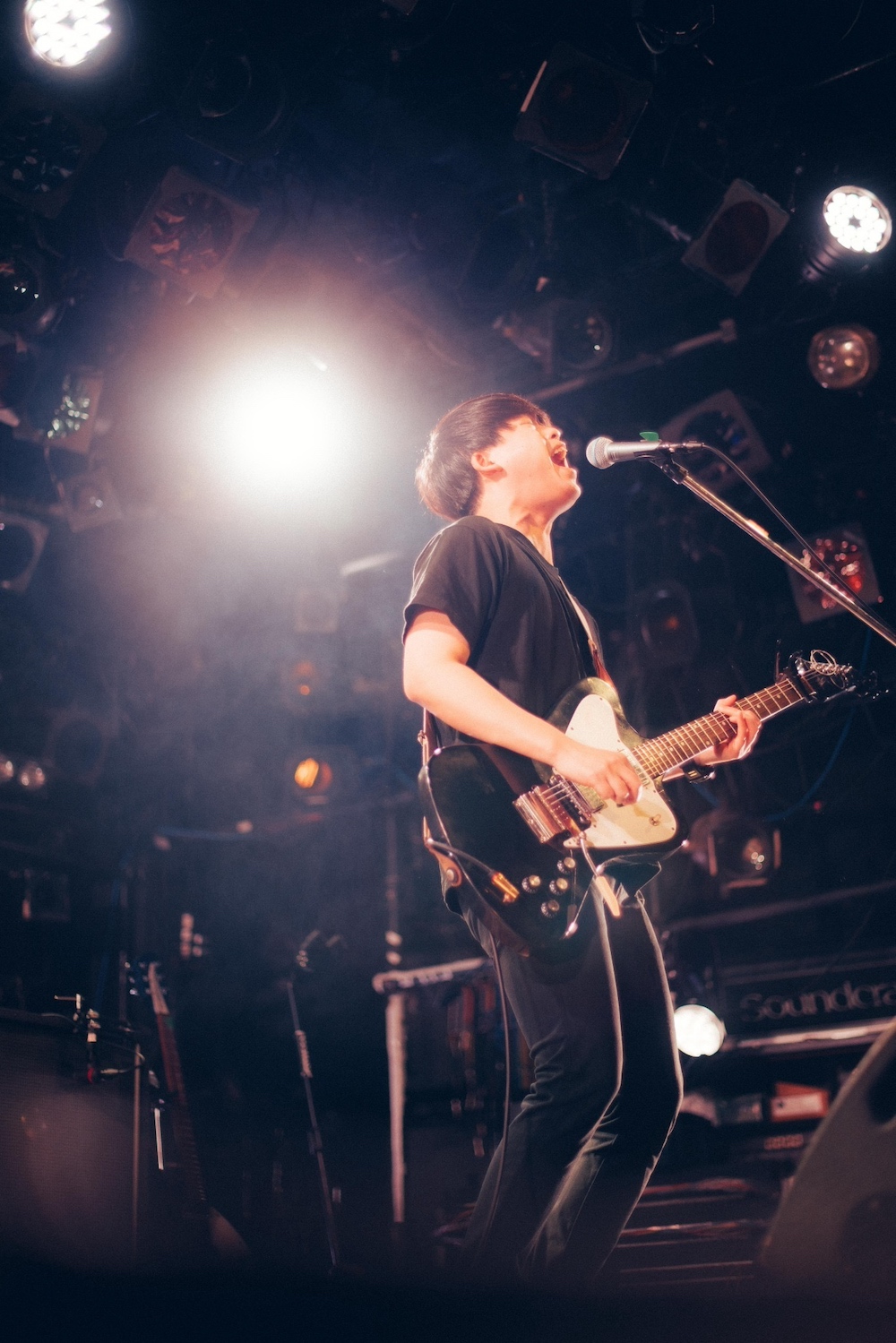 そうして始まったラストブロックでは、まず、「そういえばこれは初めて誰かのために書いた歌かなと思ってます。持って帰ってください」という言葉を添えて「前線に告ぐ」を披露。ラストの「SHIKEMOKU CITY」は待ち望んでいた人が多かったのか、イントロと同時に大きな歓声が上がった。観客は高揚感とともにシンガロング。再びの美しい光景に、驚きつつも嬉しそうなオサキは、客がいたって関係ない、ボーカルは俺だと言わんばかりに強く発声したり、ときどきマイクから離れて観客に歌うのを任せたりしている。寄り添いすぎない距離感が心地いい。