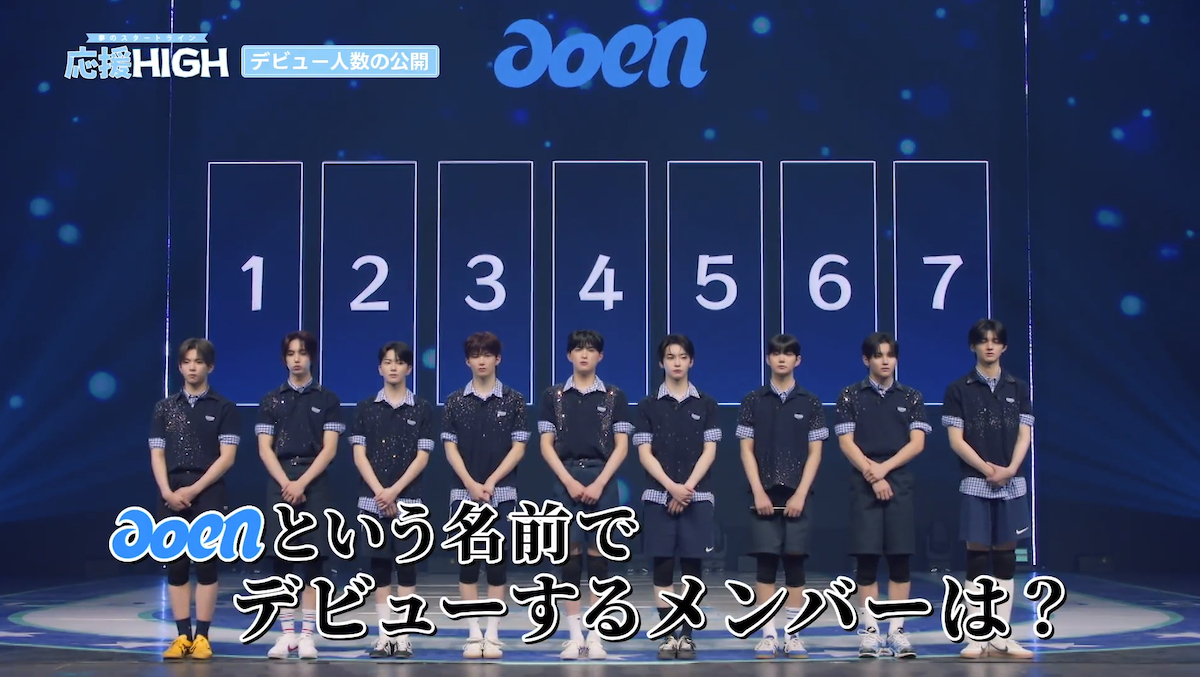 パフォーマンスの前には、デビューグループの名前も明かされた。その名前は「aoen」。“応援”という響きにも似たグループ名には、最も熱い炎の色である“青”にちなんで、“青色で世界を満たす情熱の疾走”という意味が込められている。
