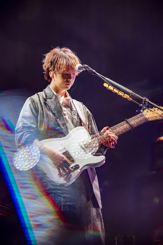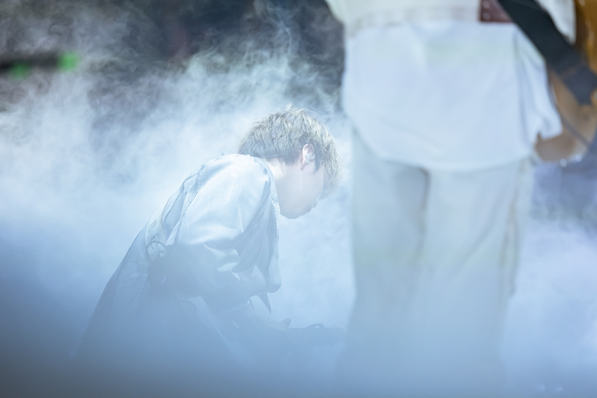 ここからは色とりどりの感情を描いた楽曲が続く。まずは「ラズベリー」。楽曲のテーマとリンクした照明のなかで〈振り向いてほしくて/私だけ見ていてよ〉という切なすぎるフレーズが広がる。波音のSE、都会の夕暮れの映像とともに奏でられたのは「凪」。“君”がいなくなった状況を少しずつ受け止めながら、凪のような悲しみに包まれる主人公を描いた歌詞がゆったりと響き渡り、ノスタルジックな気分に包まれる。