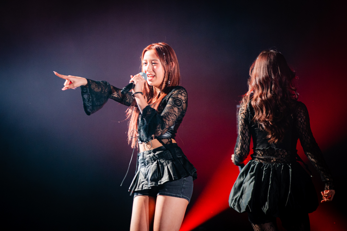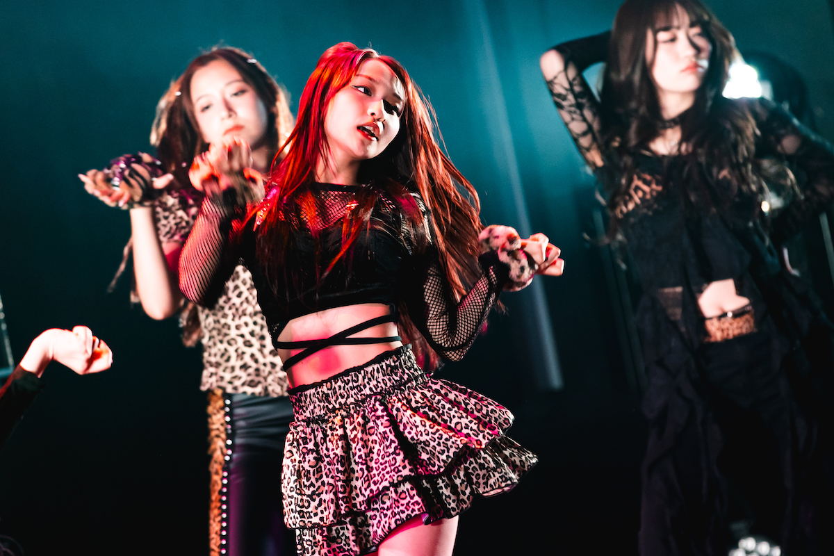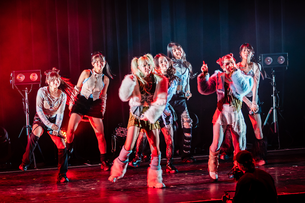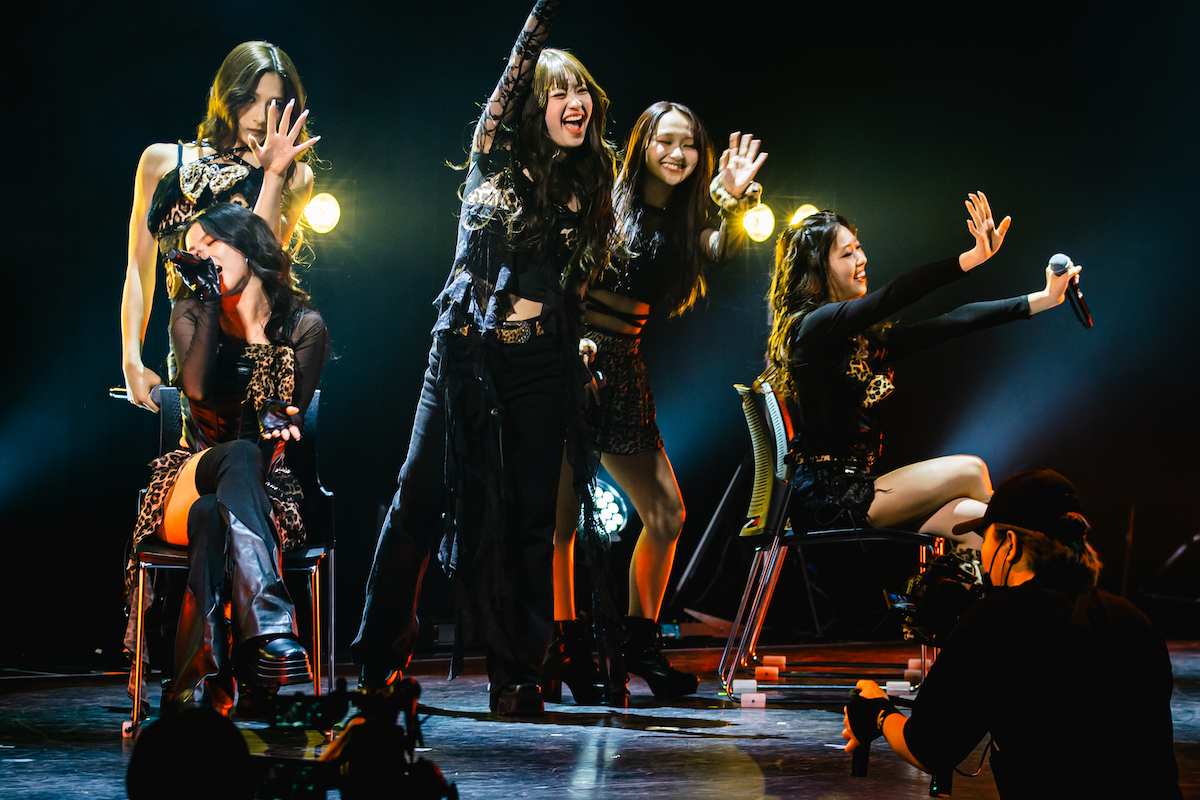 続いては、妖艶なダンスを見事に表現したエラ・メイの「One Of These」(OTO、YU、YUIKA、KYLA、Ruka、LIYA)と、クリスティーナ・アギレラ、リル・キム、マイア、ピンクによるボーカルナンバー「Lady Marmalade」(OTO、YU、YUIKA、KYLA、Ruka)を披露。特に後者は、椅子に腰掛けたり、余裕のある表情で会場に手を振って見せたり、KYLAが前列を煽るように屈んで歌ったりと魅せ方に長けたパフォーマンスでオーディエンスを魅了した。実力も表情も風格も、さらにはフェイクの細かなニュアンスも、まだ練習生なのが嘘のように感じてしまうクオリティだ。