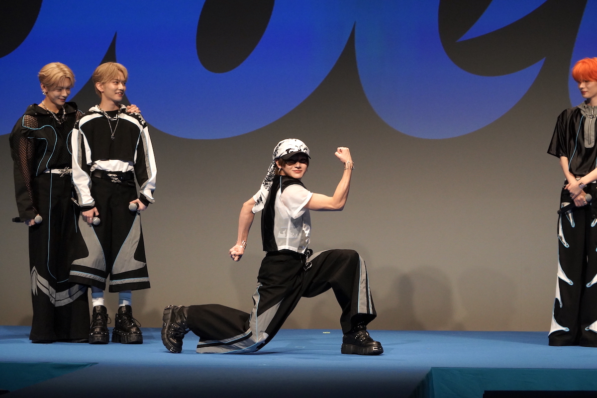「青い太陽 (The Blue Sun)」は、優樹(YUJU)曰く「エネルギッシュで、一度聴いたら元気が出る明るい曲」だという。本作ではヨーヨーがキーアイテムになっているとのことで、ヨーヨーパフォーマンスを取り入れたメンバー紹介のコーナーも。華麗にヨーヨーを操りながら、7人はひとりずつランウェイを歩いていく。思い思いの表情、ポーズを決める姿から、それぞれのキャラクターが伝わってくる一幕となった。
