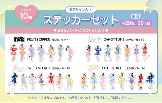 さらに、全国の通信カラオケDAM設置店では、カラオケスタンプラリーを開催。スタンプを集めると、ライブペアチケットや好きなメンバーからの直筆サイン入りステッカーセットが抽選でプレゼントされる。