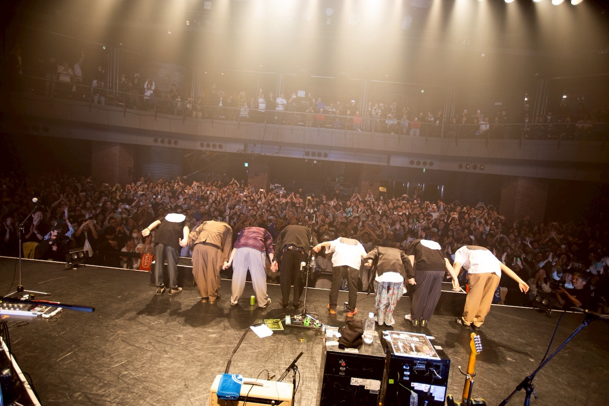 アンコールでは、磯野くんが「欲深い人間なので」と前置きしつつ、バンドとして、これからもまだまだいけるところまでいきたいと宣誓した。「まだまだ一緒に、いい夢見てくれますか?」--そう呼びかけつつ、この日3度目の乾杯へ。そして、6人編成で「いい夢」「行けたら、行くわ」を披露。メンバーが退場した後もとどまることのない観客の熱烈な声に応え、ダブルアンコールが実現。「今日は何曜日? ということで、この曲やって締めようと思います!」という磯野くんの言葉の後、ホーン隊を迎えた8人編成で「月曜のダンス」が披露された。