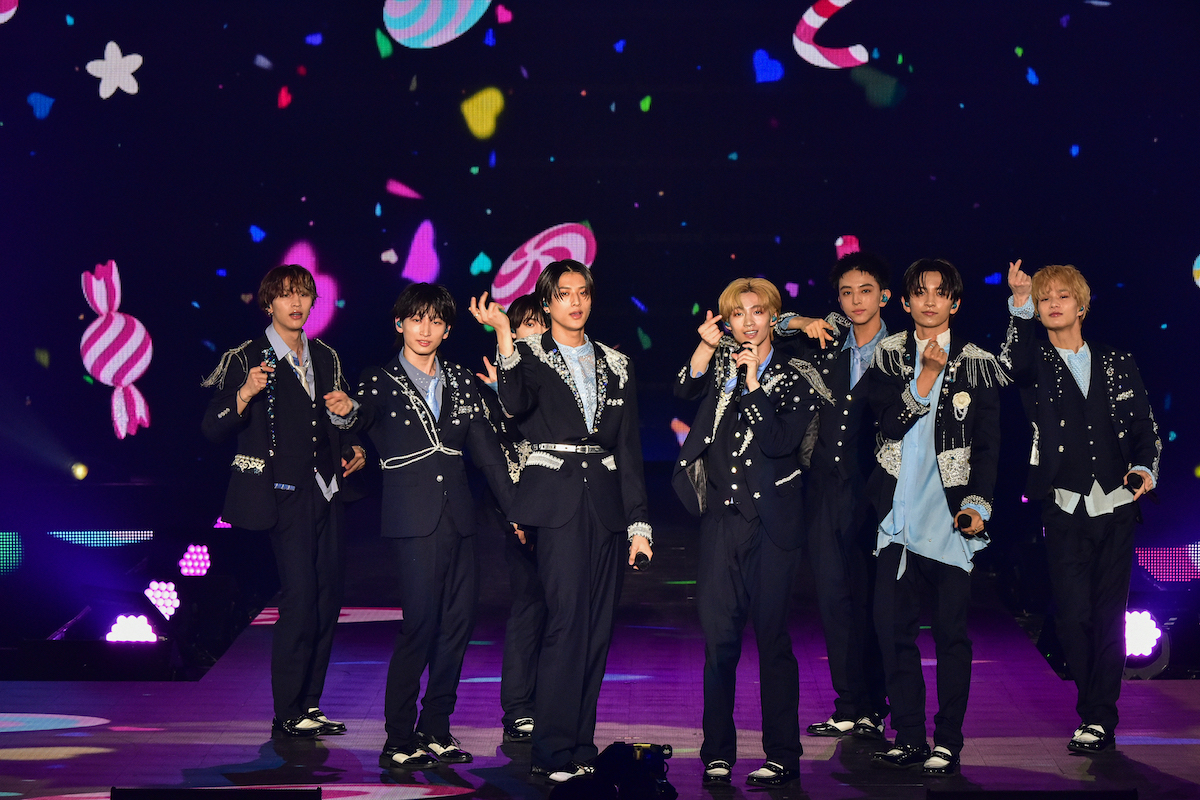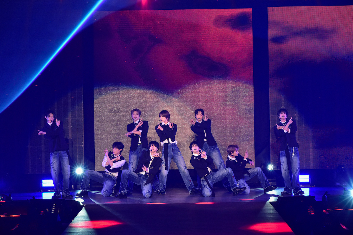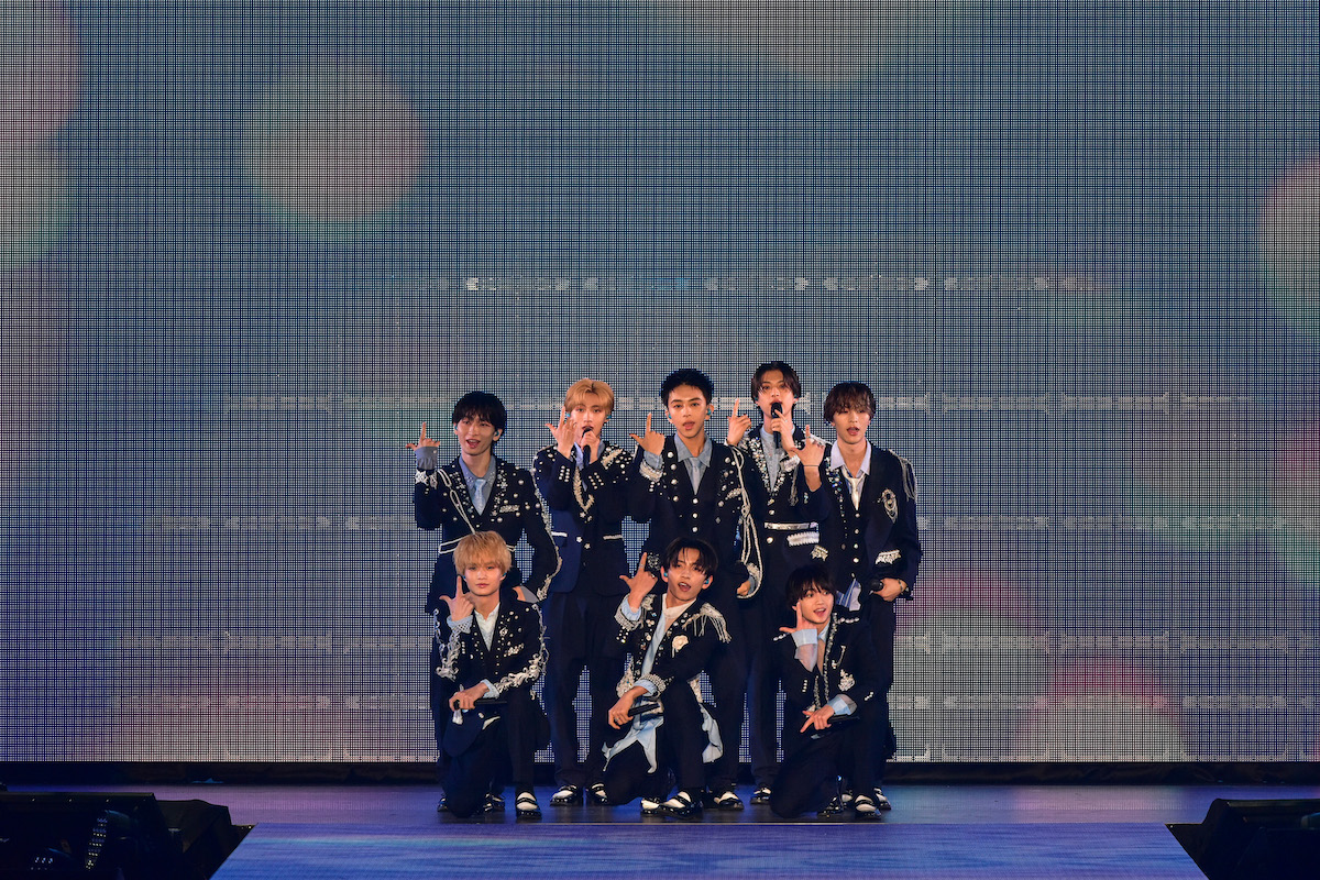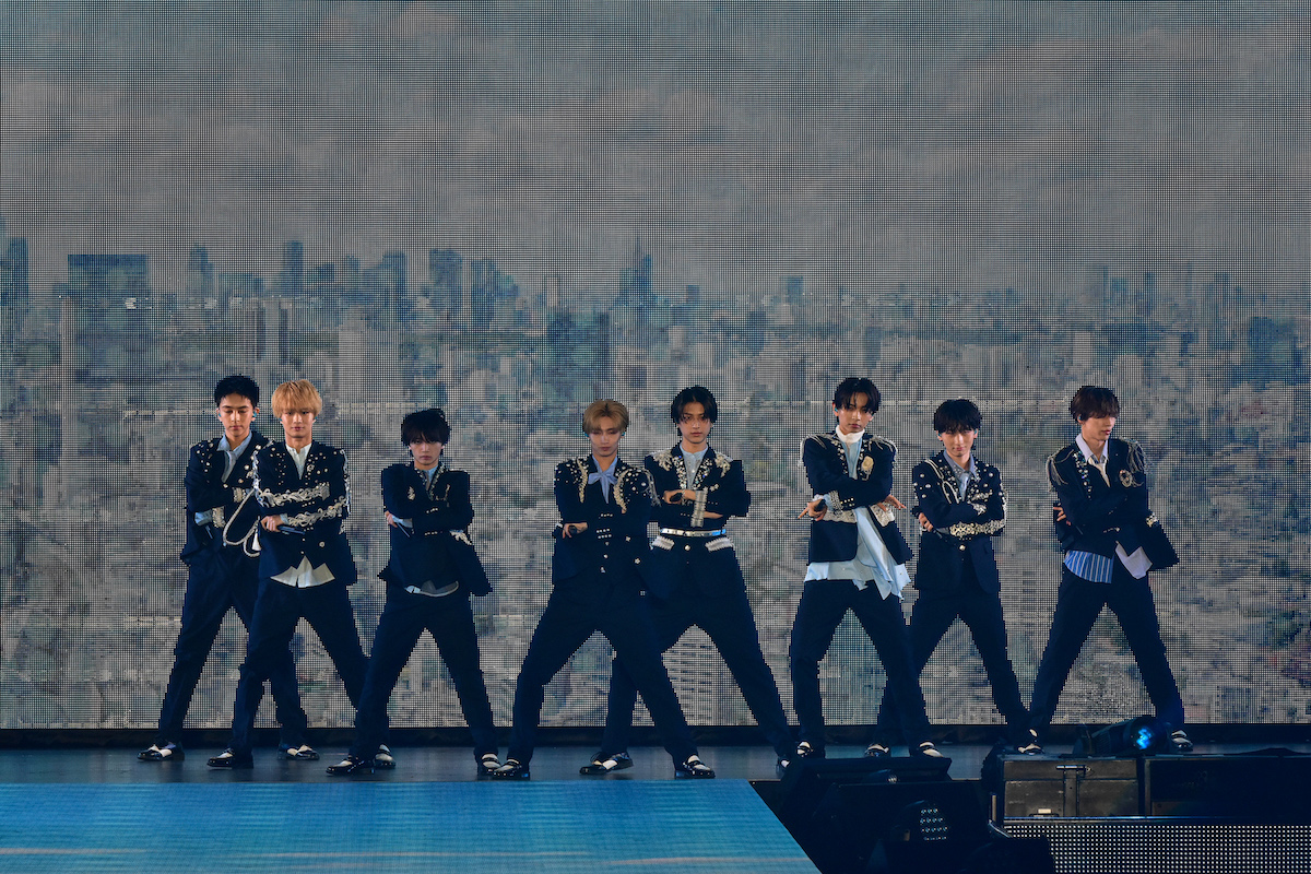&TEAMは黒のジャケットにデニムの衣装で登場。最初に歌うのは最新曲「Go in Blind (月狼)」。ダークな雰囲気のMVが特徴的な楽曲だが、パフォーマンスでもMVと同様に曲中で目隠しをしたダンスが特徴的な一曲になっている。濃厚な世界観を完璧に揃えたダンスで表現した。続いてMCでは一人ひとりが自己紹介へ。Kは『東京2025世界陸上』のTBS世界陸上応援サポーターに就任し、この日の午前中に5kmを走ってきたことを明かす。さらに、『Go in Blind (月狼)』が「オリコン週間シングルランキング」で1位を獲得、自己最高売上を達成したことをファンに感謝した。
