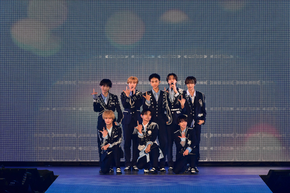 「Iris」のSHOOTのしっとりしたボーカルからスタートしたBUDDiiS。このイベントでは珍しいゆったりした曲調で会場を一気にBUDDiiS色にする。FUMINORIの「ガールズアワード、楽しんでいこうぜ!」の煽りからスタートした「Ütopia」では一変してポップで可愛らしい雰囲気で魅了。一人ひとりが自由すぎる自己紹介を終え、FUMINORIが中心となり、MORRIEのアカペラに合わせて次の曲でタオルを回す振りのレクチャーをして、会場を一つにする。そうして最後に披露されたのは「BUD」。BUDDiiSらしいのびのびとした雰囲気で温かく会場を盛り上げた。10人の美しいハーモニーはBUDDiiSの真骨頂。他のアーティストと同様に披露された曲は3曲だったが、それでもBUDDiiSらしさが存分に伝わるステージとなった。