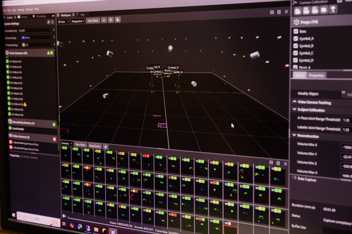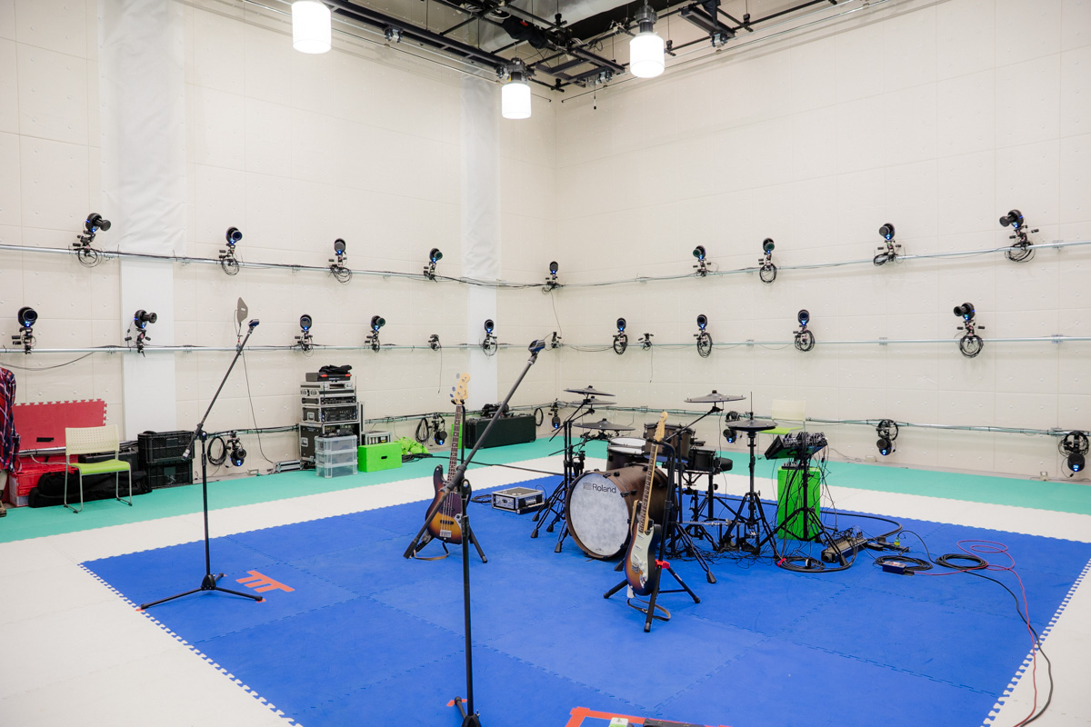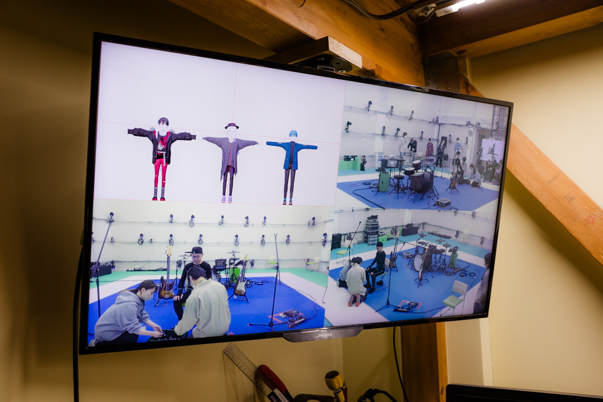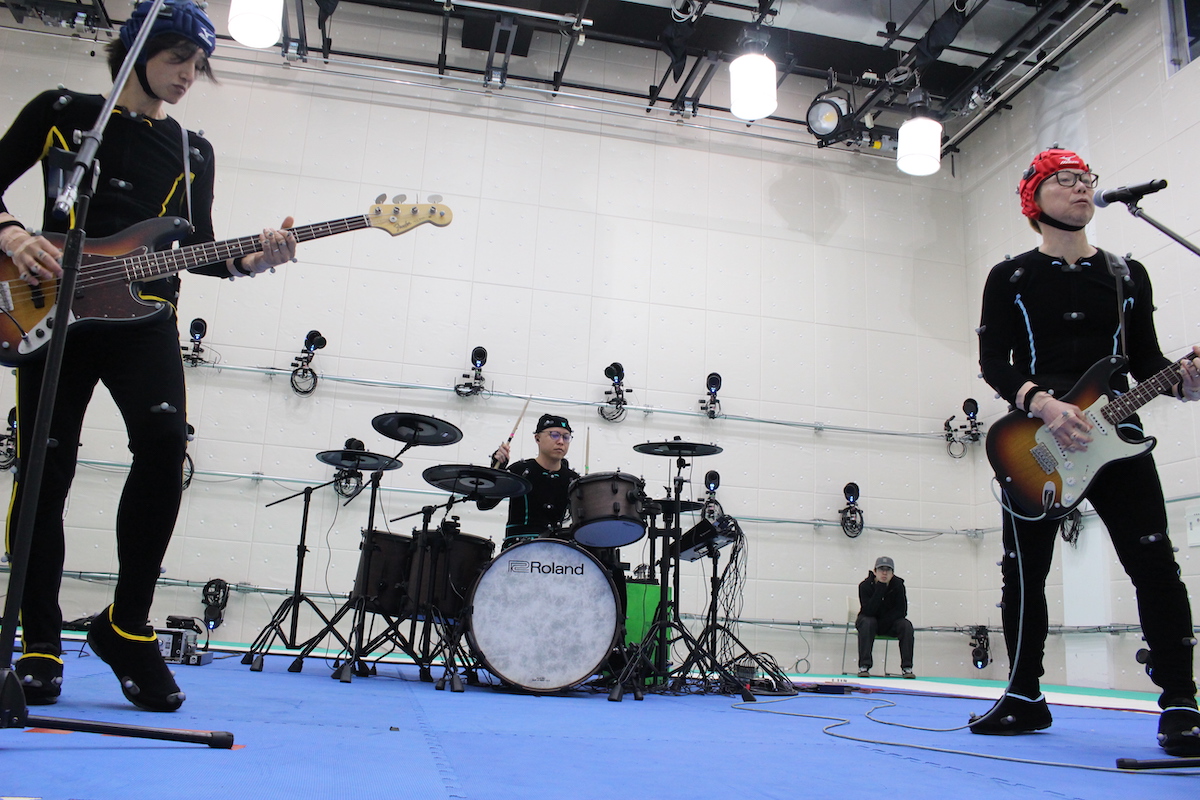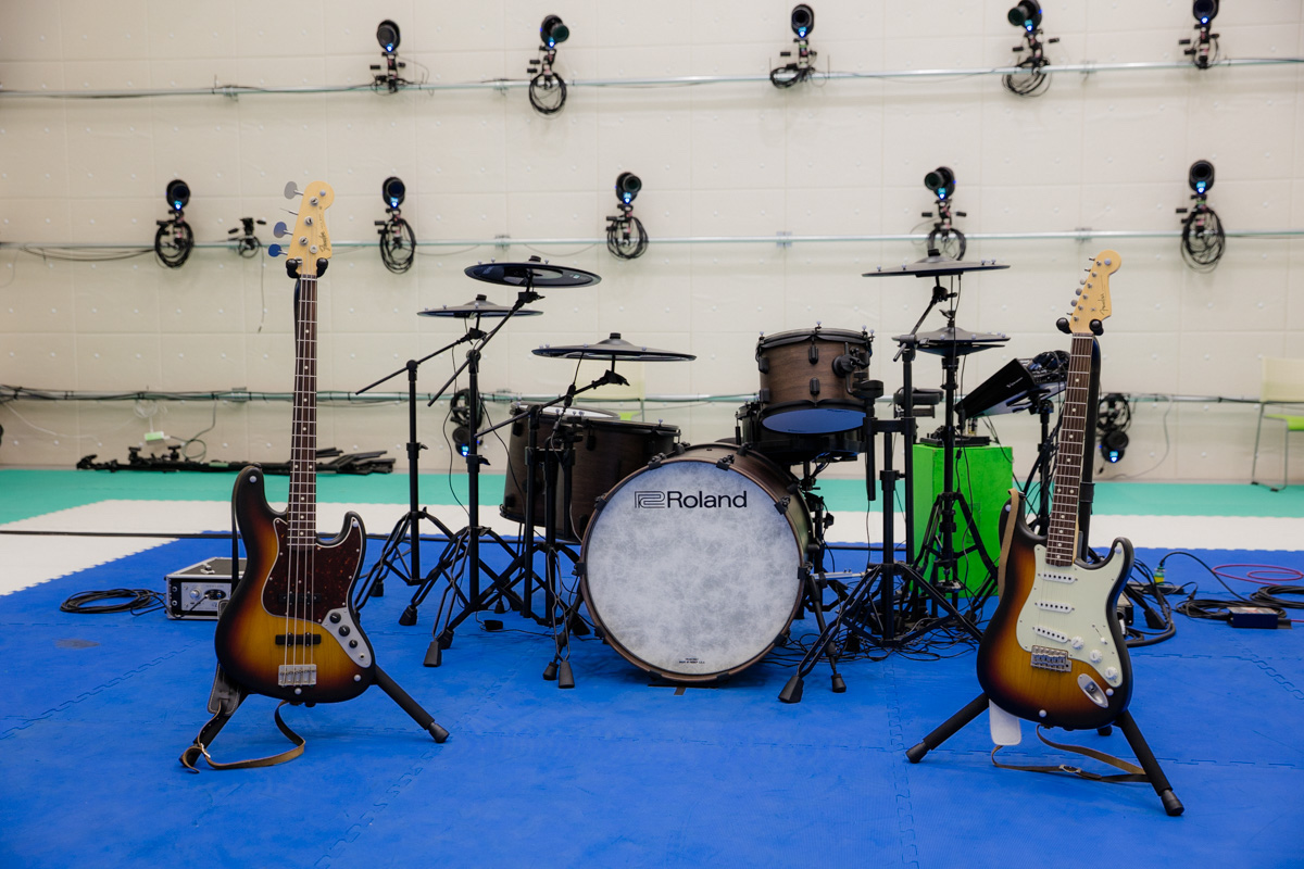 福田:『ポラポリポスポ』はキャラクターたちの物語と音楽、パフォーマンスの3つを通じて表現を極めるプロジェクトです。一番のこだわりは、とにかくバンドをリアルに描くこと。そのために、このようなモーションキャプチャー(以下、キャプチャー)スタジオを使い、キャラクターたちにリアリティを反映できるよう、音とパフォーマンスで互いに技術を高め合いながら映像制作を進めています。
