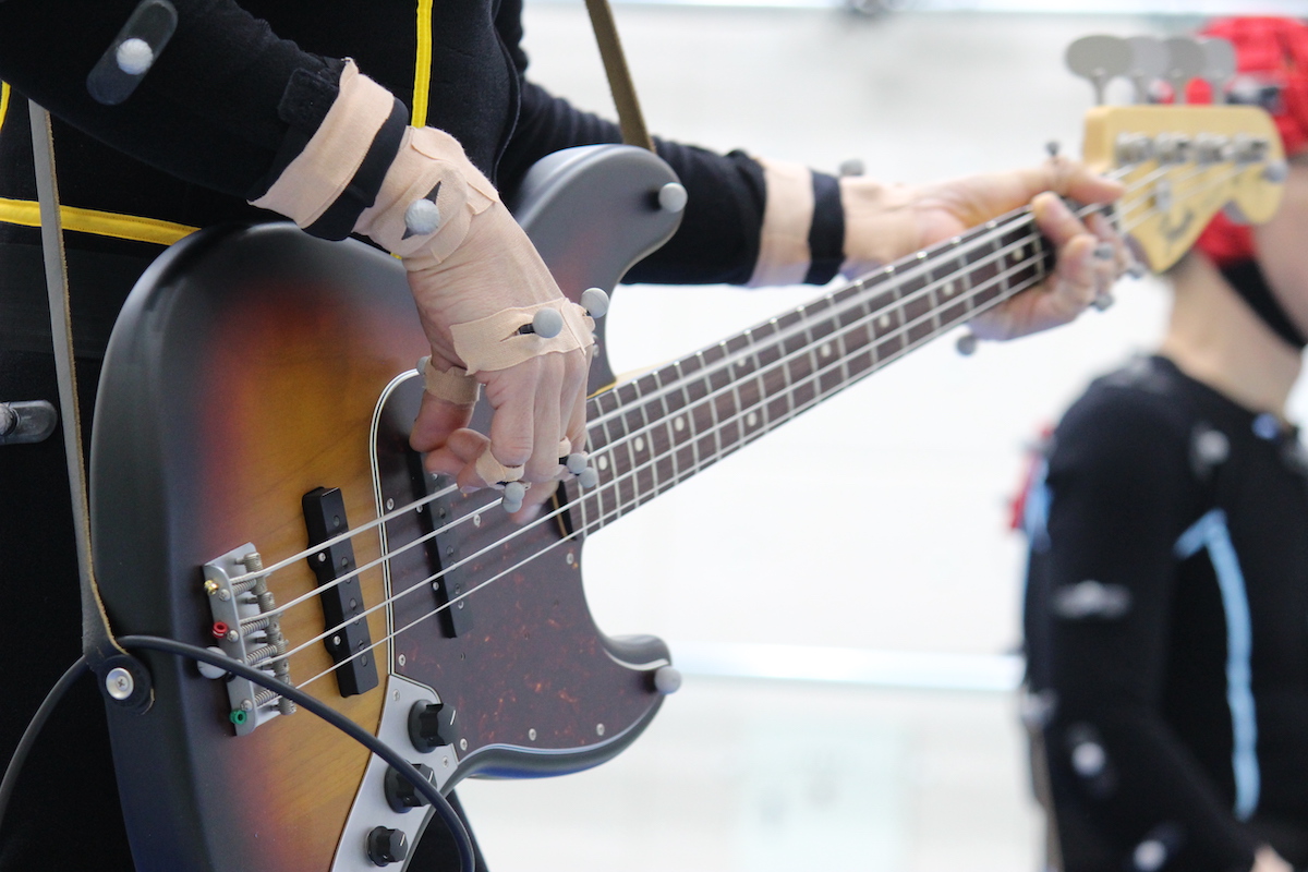 福田:徳永さんは作中バンドの1つ、WAKAZOのMVでモーションアクターとして実際に弾いていただいているんですが、そこでこの技術がどこまで徳永さんの指に追いつけるかの検証もしています。