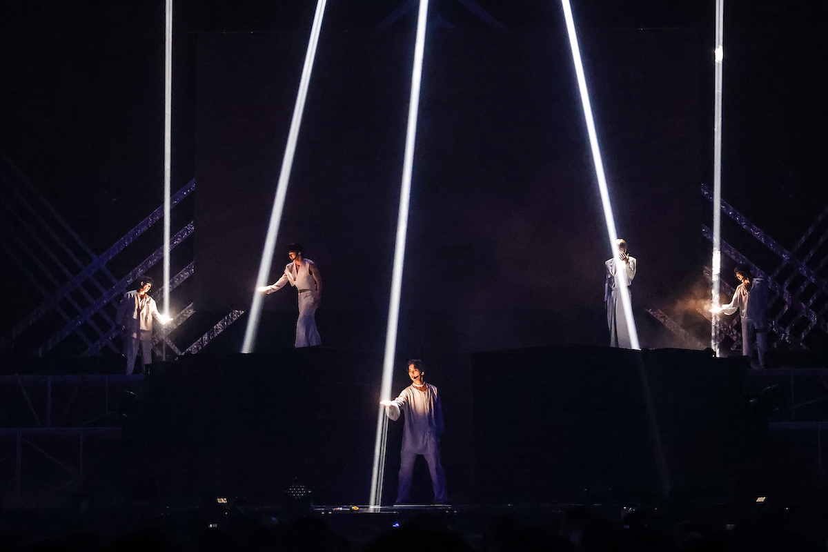 映像を挟むと、真っ白な衣装をまとったメンバーが再びステージに。「DEJAVU」、「The Light」でゆったりと歌声を聴かせてクールダウンしたところで、「Hunt」が飛び出す。5人の歌声もダンスもばっちり揃っており、表情でも楽曲の世界観を作り上げていった。さらに「Only One For Me」と続き、彼らの美しい歌声が会場中に広がっていった。オフィシャルキャラクターのスワッくんの映像を挟んで始まったのは、「Video Chat」、そして「LUCKY」。SWAGも一緒に踊ったり、歌ったり、かわいらしくも爽やかな空気が会場を包んでいった。