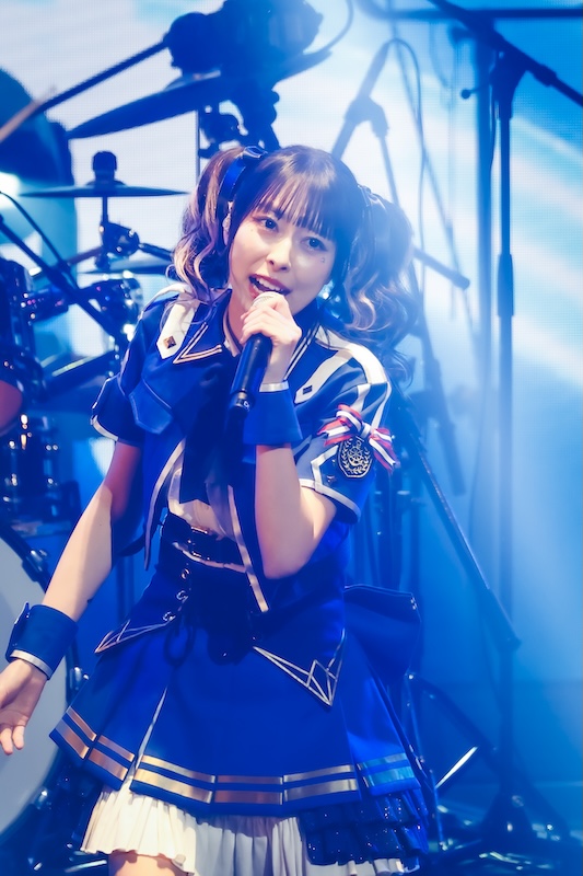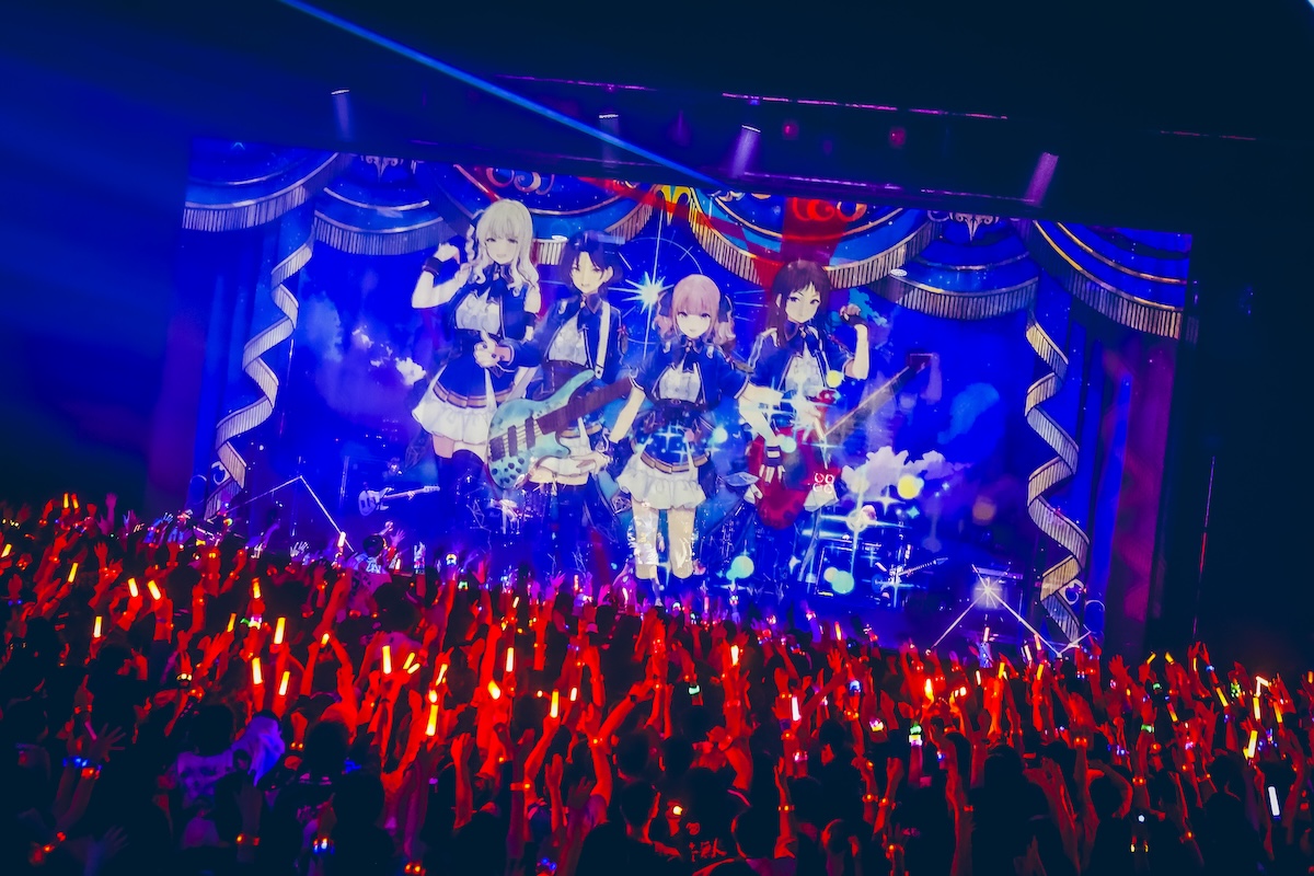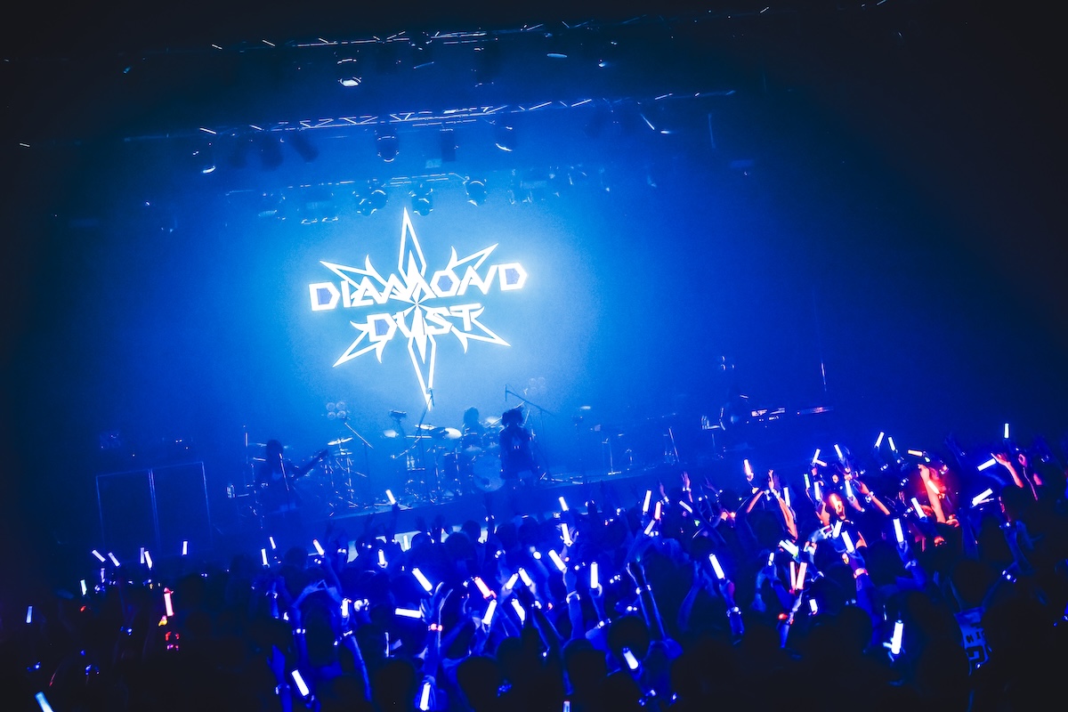 メンバーがステージから一度捌けると、スクリーンにアニメ第5話でTOKYO DOME CITY HALLの前で会話する仁菜と安和すばるの映像が映し出される。この演出に客席からどよめきの声が上がると、映像はそのままダイヤモンドダストのライブシーンへと続き、オーディエンスの期待を煽っていく。すると、ステージ上にはダイヤモンドダストの衣装を身に纏った近藤玲奈(Vo/ヒナ役)、松岡美里(Ba/ナナ役)、漆山ゆうき(Gt/リン役)、宮白桃子(Dr/アイ役)が登場。4人はアニメ第5話とリンクする形で「ETERNAL FLAME〜空の箱〜」を披露し、フロアはさらなる熱気に包まれていく。トゲナシトゲアリが影や陰を投影させているとするならば、今目の前でパフォーマンスするダイヤモンドダストはまさに陽を具現化したような存在であり、眩しすぎるほどのオーラで会場を照らし続けた。
