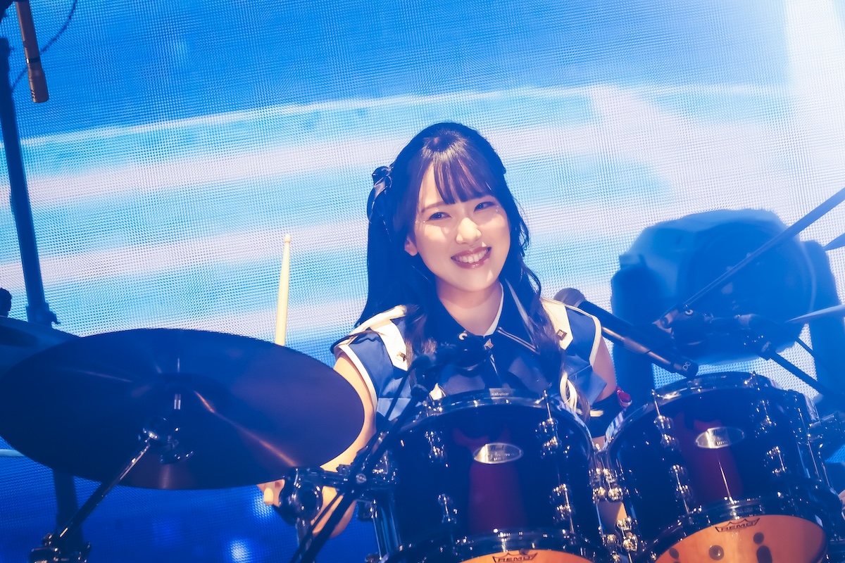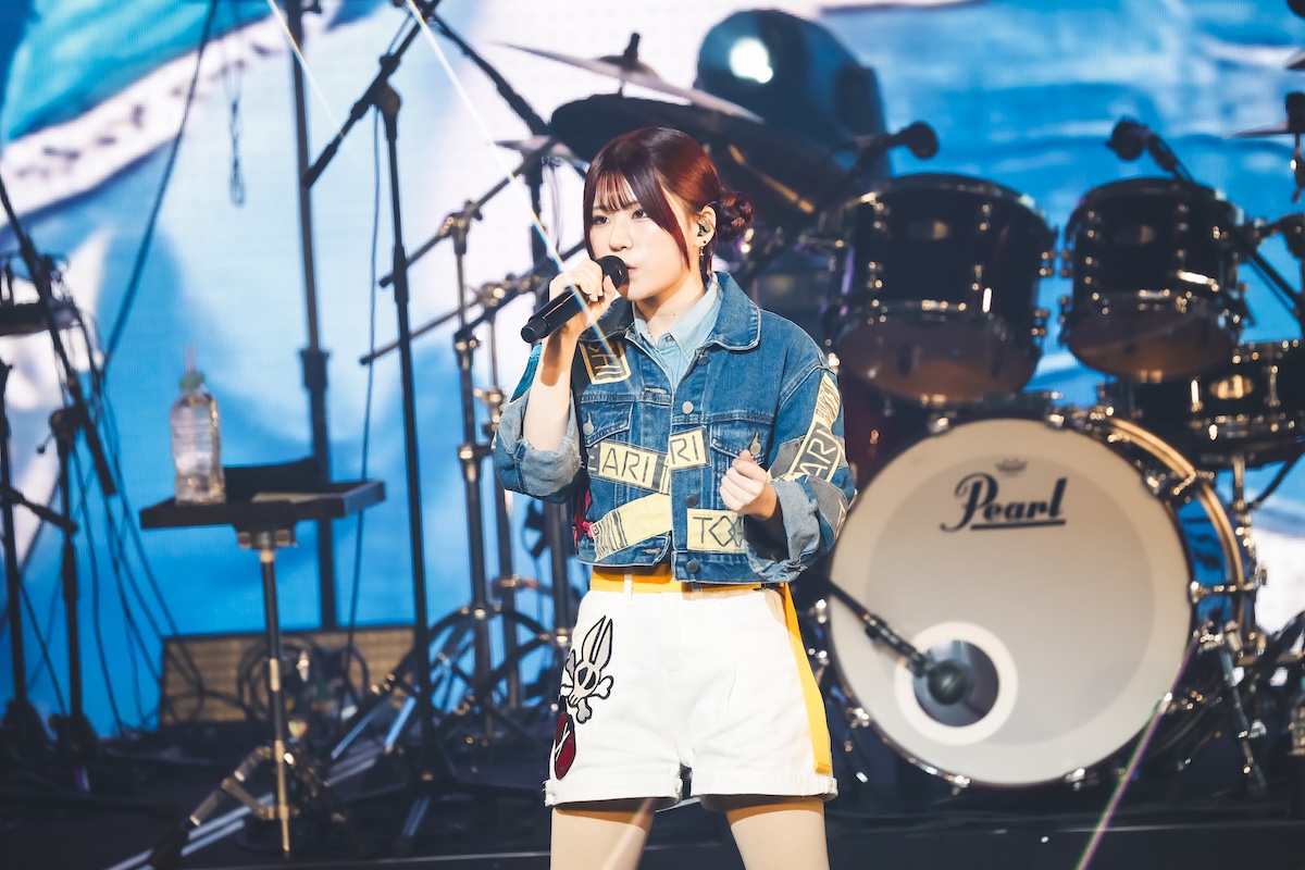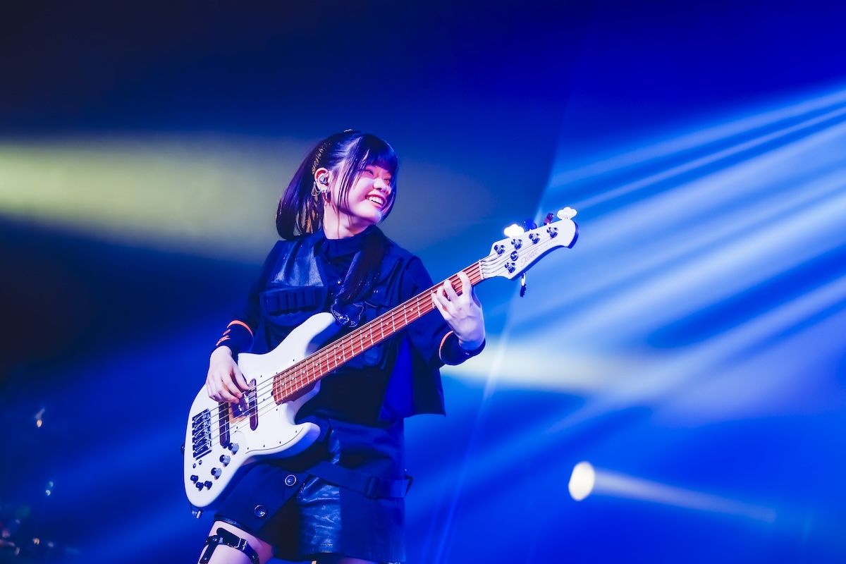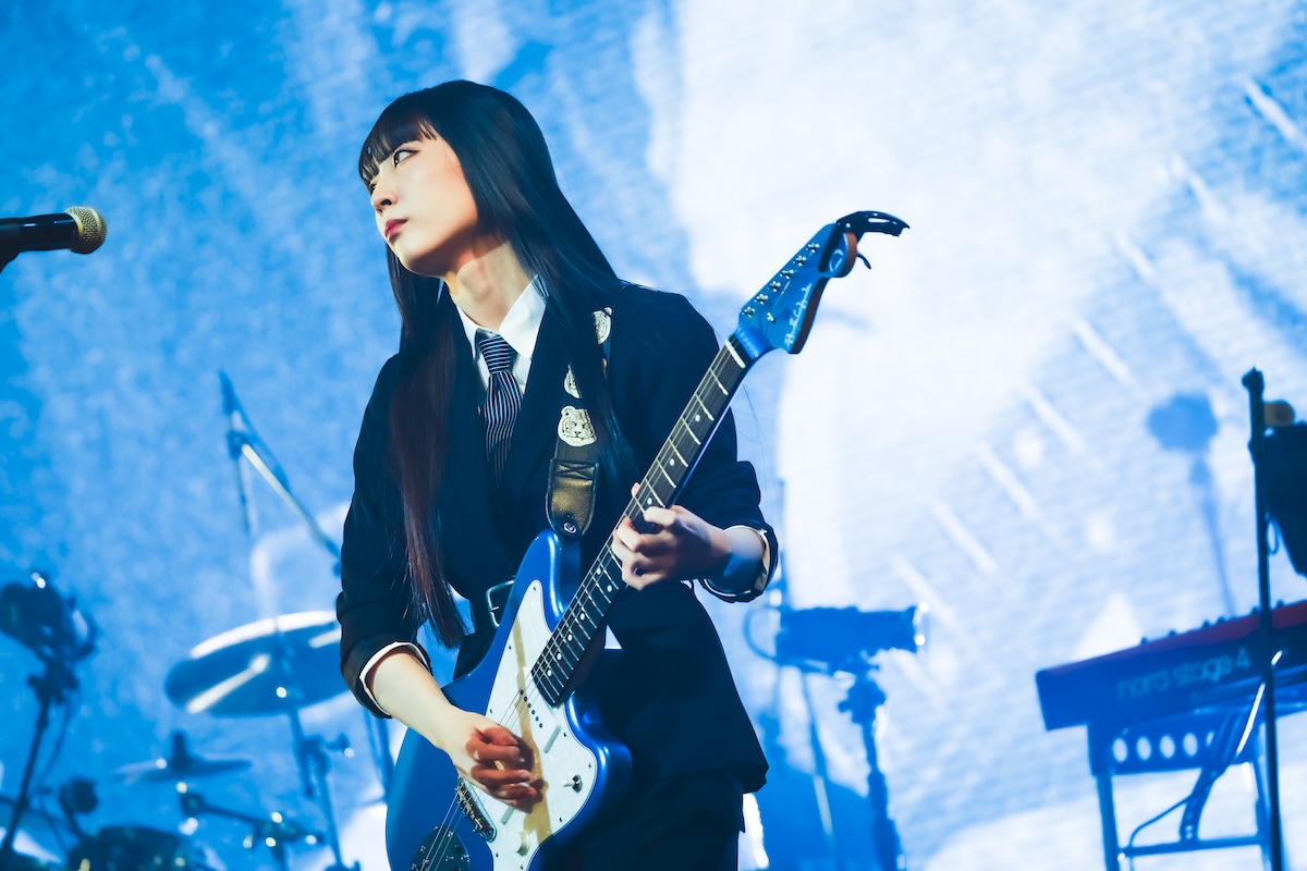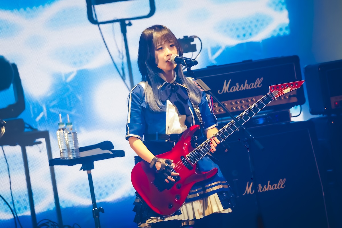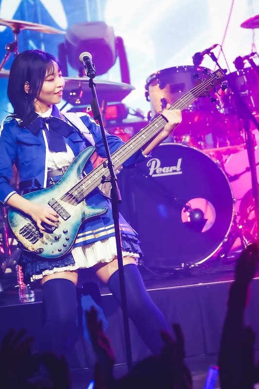 そんな空気が一変したのは、理名がMCで「アニメ第5話で仁菜があのへん(と客席を指差し)でダイダス(ダイヤモンドダスト)のライブを観ていたんですよね」とこの日のライブ会場について触れたあたりからだろう。「ここからはもっともっと、(アニメの)ストーリーに入り込んでライブを進めていこうと思います」の言葉に続いて披露されたのは、『ガールズバンドクライ』とトゲナシトゲアリにとっての“はじまりのうた”である「名もなき何もかも」。ステージ後方のスクリーンにはアニメ内で同曲が初披露された第7話の映像も投影され、ステージ上のリアルなパフォーマンスとシンクロしていく。続く「空の箱」では冒頭で夕莉による弾き語りバージョンもフィーチャーされ、アニメ第1話での仁菜と桃香の邂逅を再現。「声なき魚」ではアニメ第3話での“新川崎(仮)”初ステージを追体験させるなど、昨年9月開催の2ndワンマンライブ『凛音の理』(※1)を彷彿とさせるステージが展開されていった。