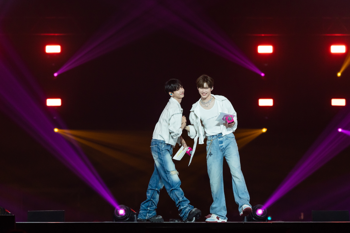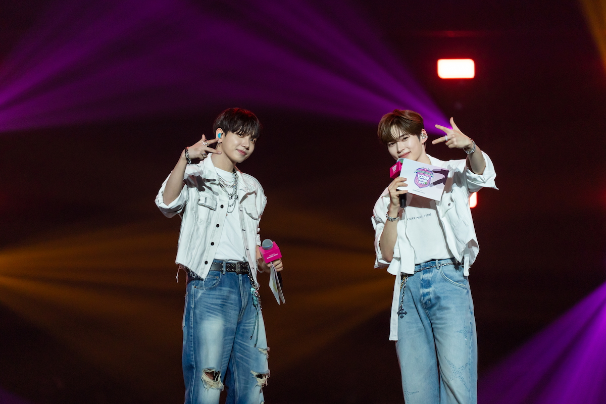 今回、2日目のMCを務めたのは、ZEROBASEONEのSUNG HAN BINとBOYNEXTDOORのJAEHYUN。ともにグループのリーダーであり、音楽番組『M COUNTDOWN』(Mnet)でもRIIZEのSOHEEを含むトリオで一緒にMCを務めていた仲良しな2人だが、『KCON』でMCを一緒にするのは初めてとのこと。ときにジョークも交えつつ、抜群の呼吸でイベントを進行していた。