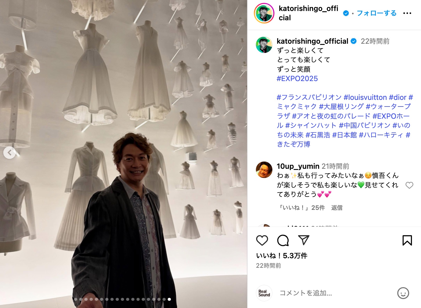 2025.05.17 20:52 香取慎吾、大阪・関西万博を満喫 画像ギャラリー [2/19] 文=リアルサウンド編集部 香取慎吾インスタニュース ポスト シェア ブックマーク LINEで送る 前のページ 次のページ (画像 2 / 19 ) 前のページ 記事に戻る 次のページ この記事の画像一覧