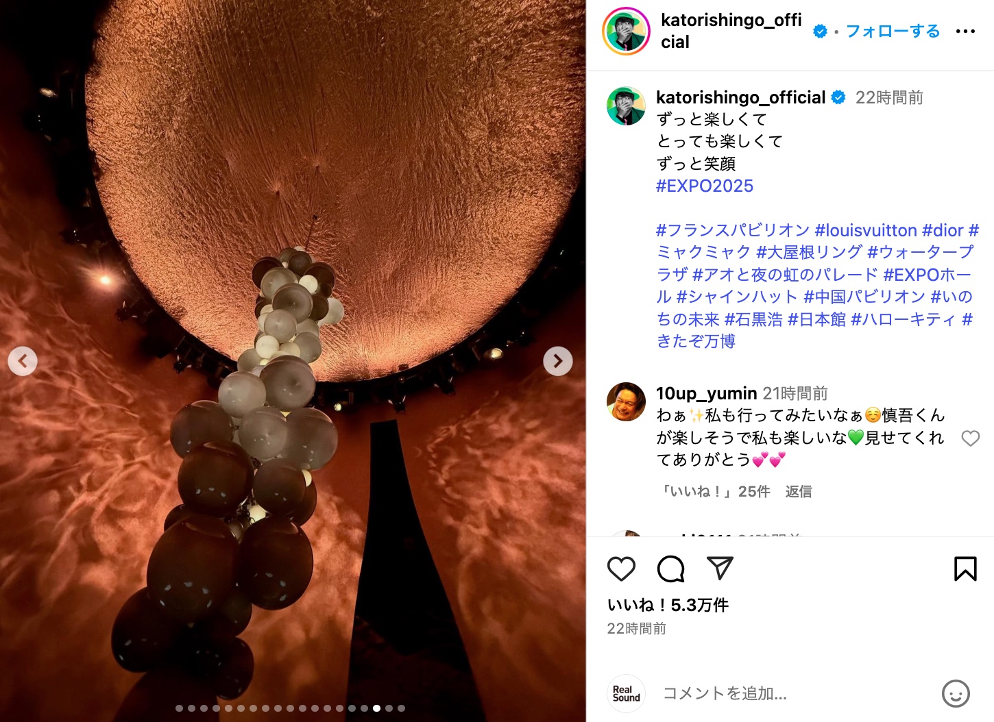2025.05.17 20:52 香取慎吾、大阪・関西万博を満喫 画像ギャラリー [4/19] 文=リアルサウンド編集部 香取慎吾インスタニュース ポスト シェア ブックマーク LINEで送る 前のページ 次のページ (画像 4 / 19 ) 前のページ 記事に戻る 次のページ この記事の画像一覧
