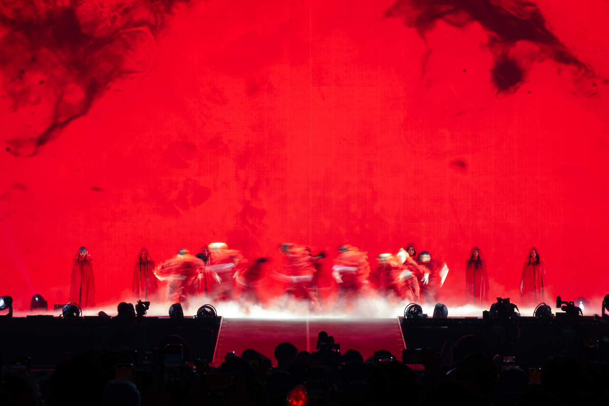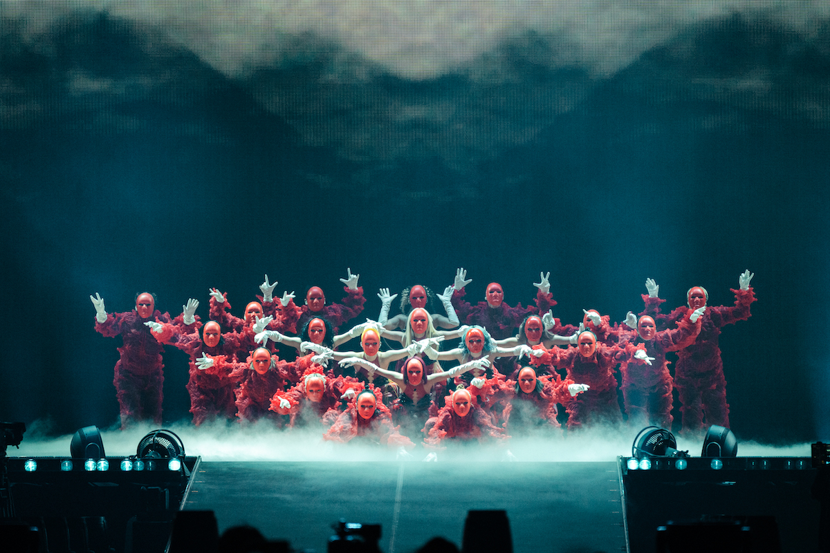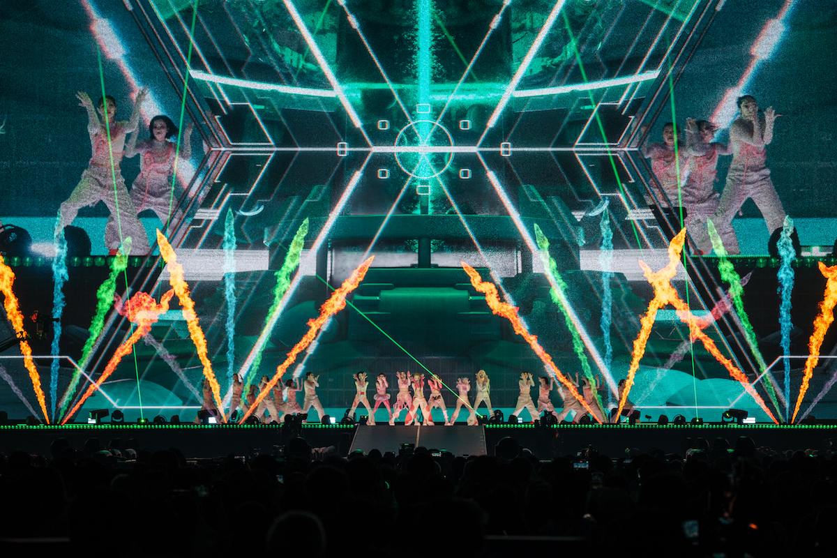 白と赤、ピンクを基調とした衣装に着替え、ステージに再び姿を現したメンバーたち。「UNDEFEATED」を披露すると、冒頭から大歓声が沸き起こった「TGIF」で観客のボルテージをさらに高めていく。この曲では、客席により近い場所に作られた特設ステージでパフォーマンスを披露し、ダークさがありながらもポップな楽曲の中、しなやかに全身を使ったダンスで観客を魅了していく。