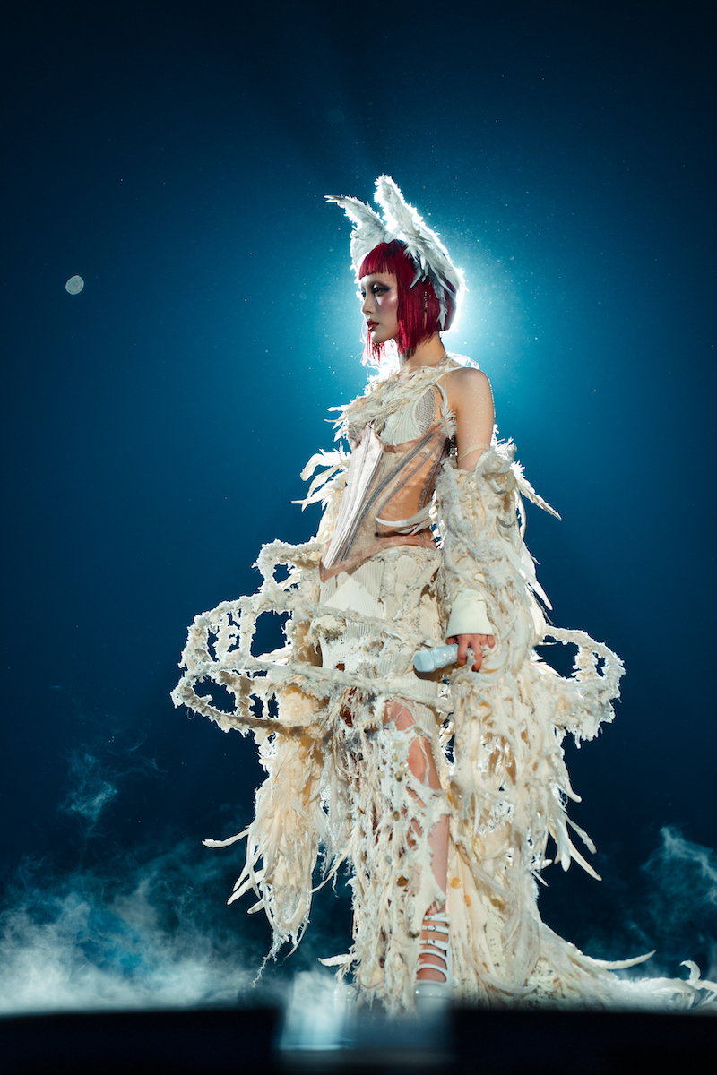 その後、刀で何かを切り裂くような音と共に展開された、7人の一糸乱れぬダンスは圧巻。まるで舞台芸術を見ているかのようで、和の美しさを兼ね備えながらも、クールで、それでいてどこか幻想的なパフォーマンスが作り上げられていく。