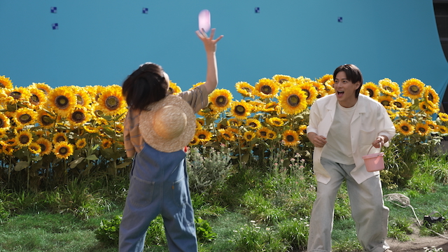 今回のWEBムービーでは、3パターンを撮影。寝ている平野に少年がひまわりでいたずらして起こそうとするシーンや、互いをスケッチしようといろんなポージングをする中でわざと動いてちょっかいを出したりなど、2人のほのぼのとしたかわいいやりとりが映し出されている。水風船を投げ合うシーンは、濡れてしまうので一発勝負だが、水が足りなかったのか投げつけても中々割れず、「ぜんぜん割れないね〜」と笑顔で話す平野。もう一度風船を作り直し、再勝負へ。少年役の森は平野に容赦無く水風船を投げつけ、平野はうまく背中で交わしつつもびしょ濡れになったという。